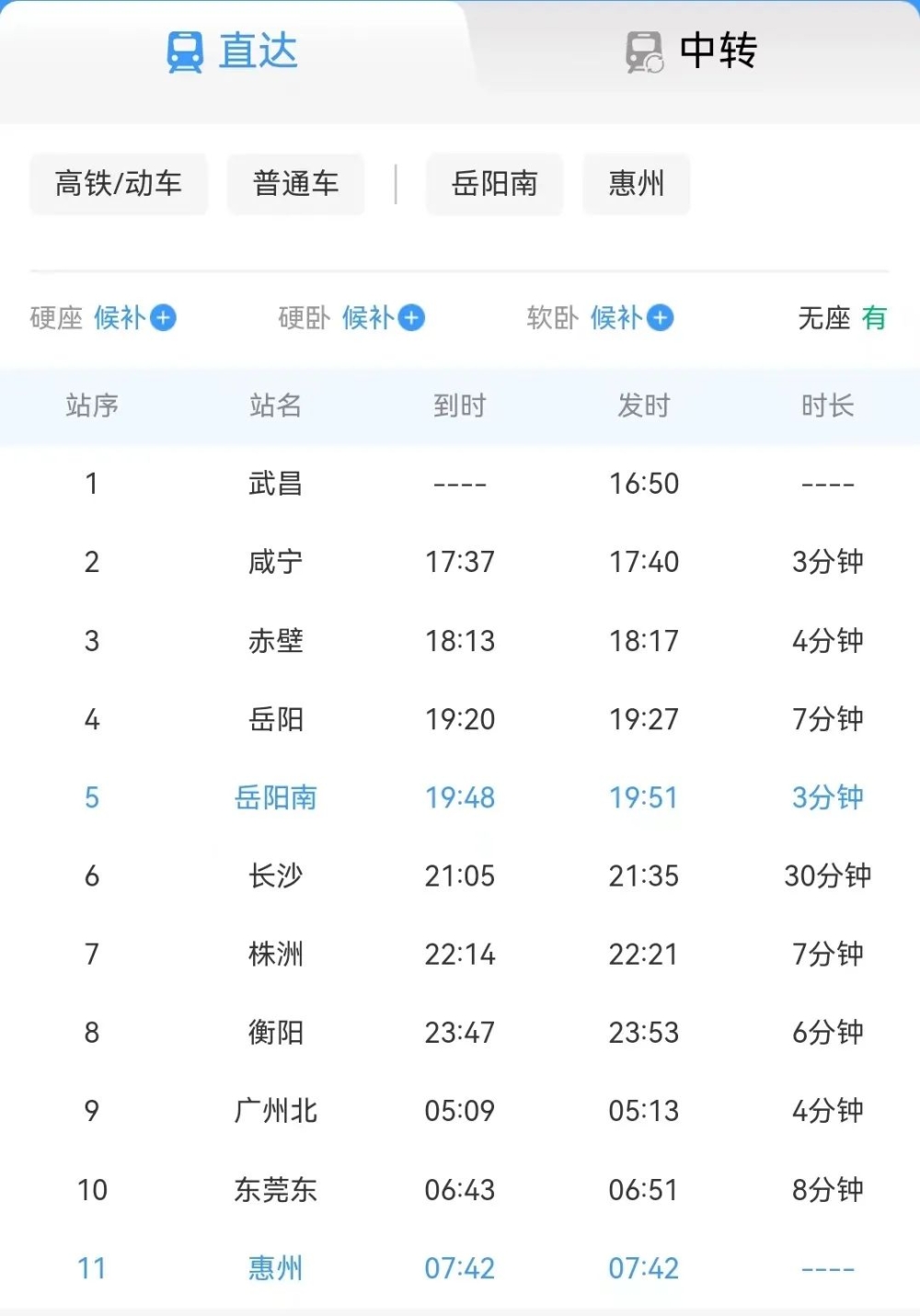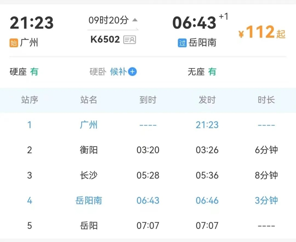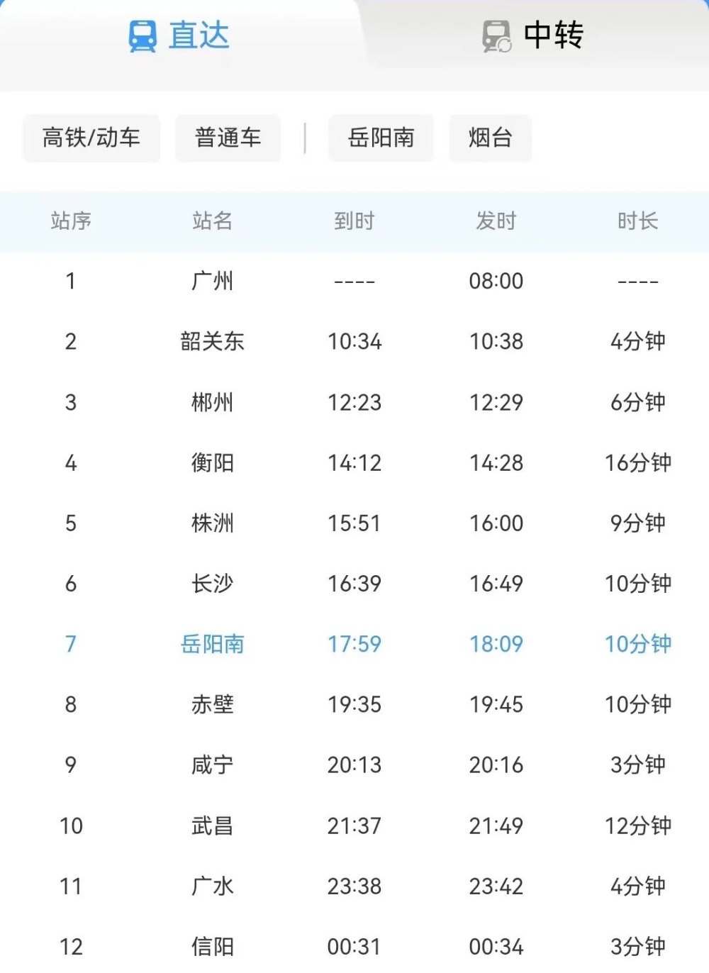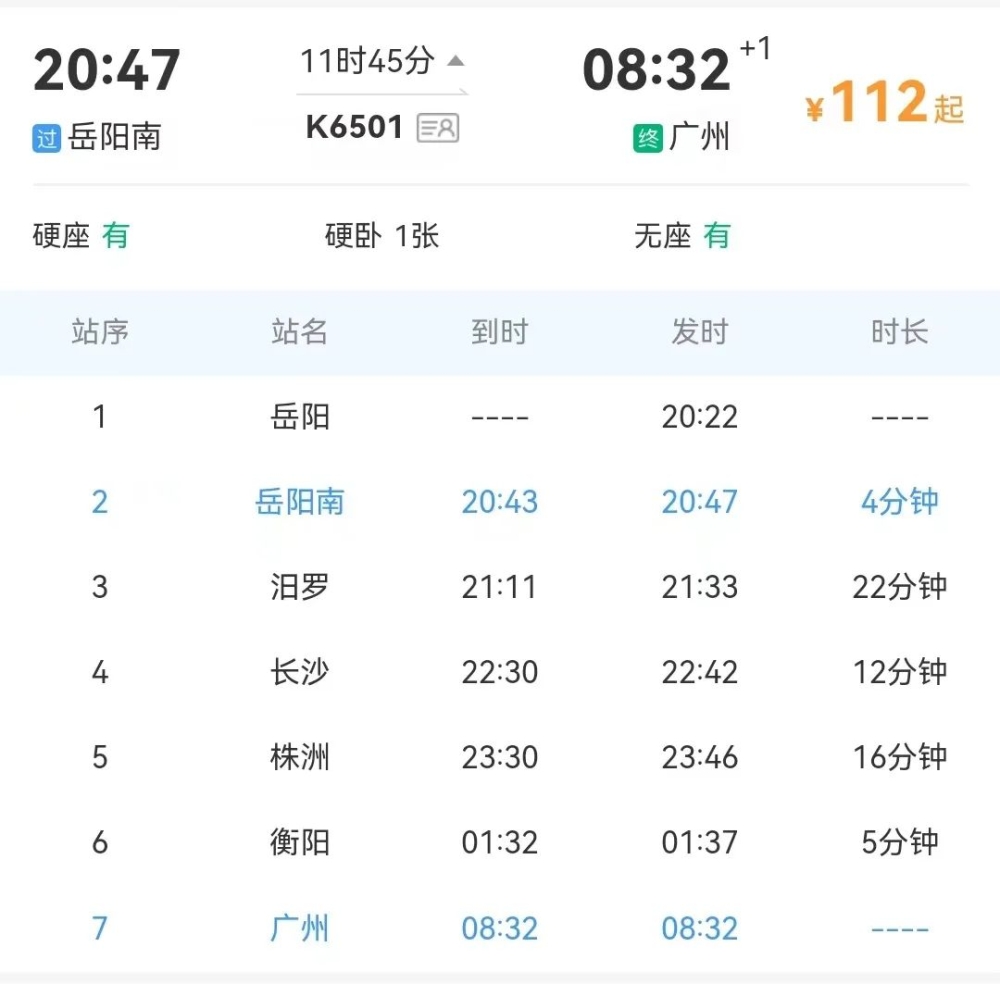询问岳阳南站最新列车时刻表