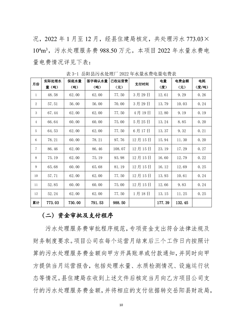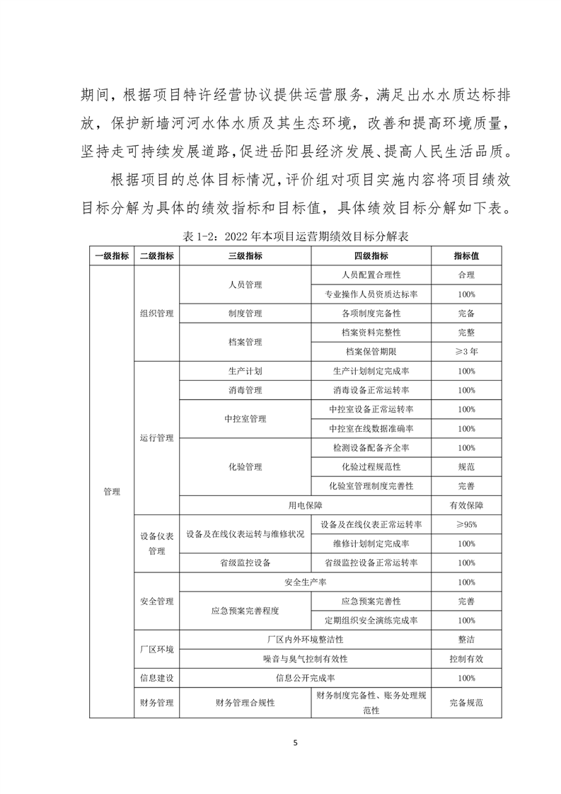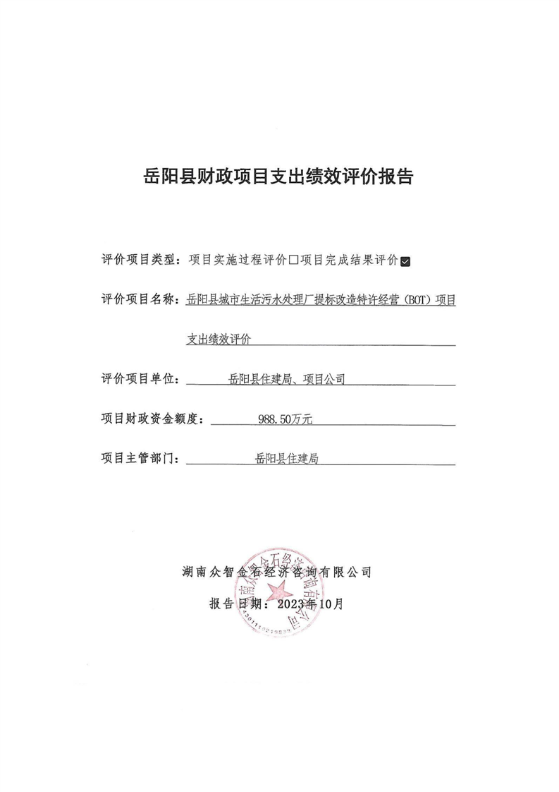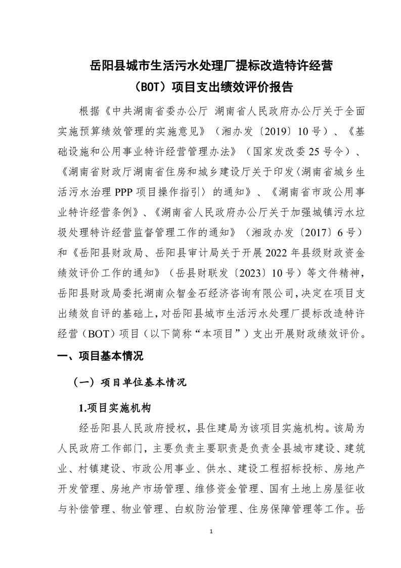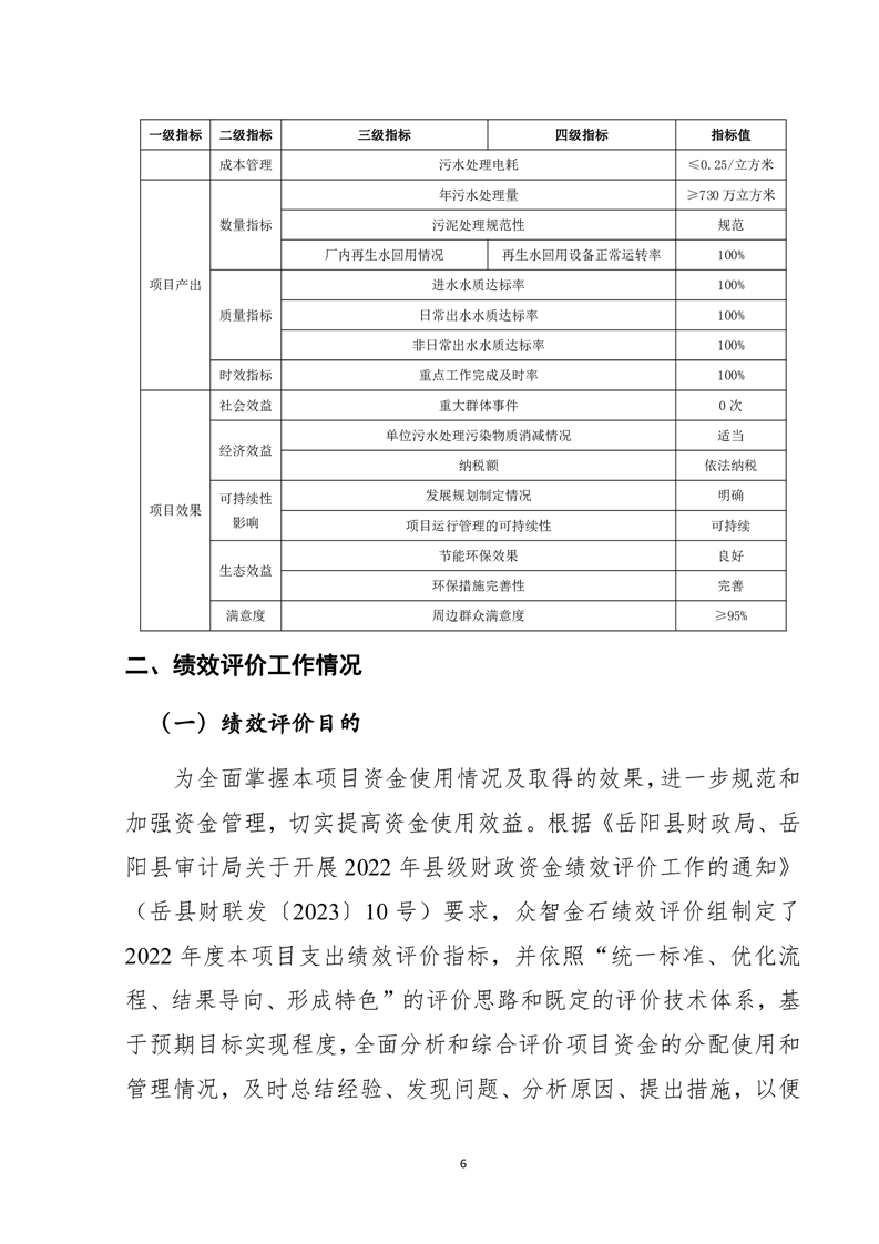 岳阳县2022年城市生活污水处理厂运营期项目支出绩效评价报告