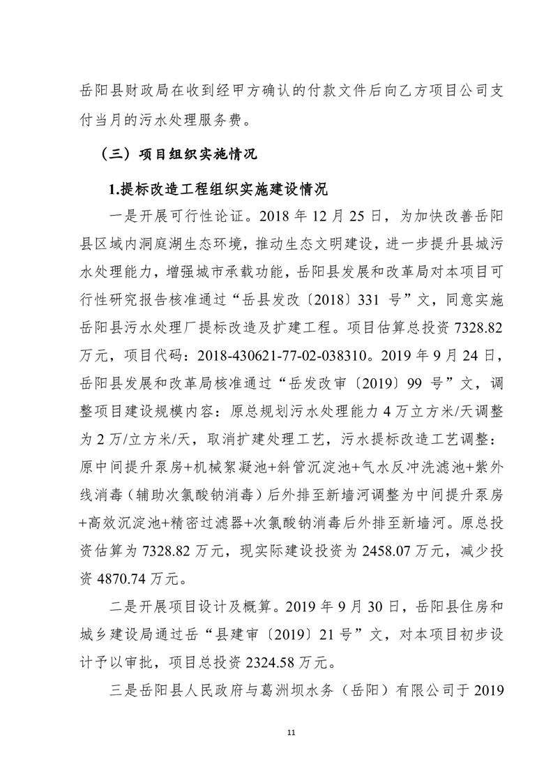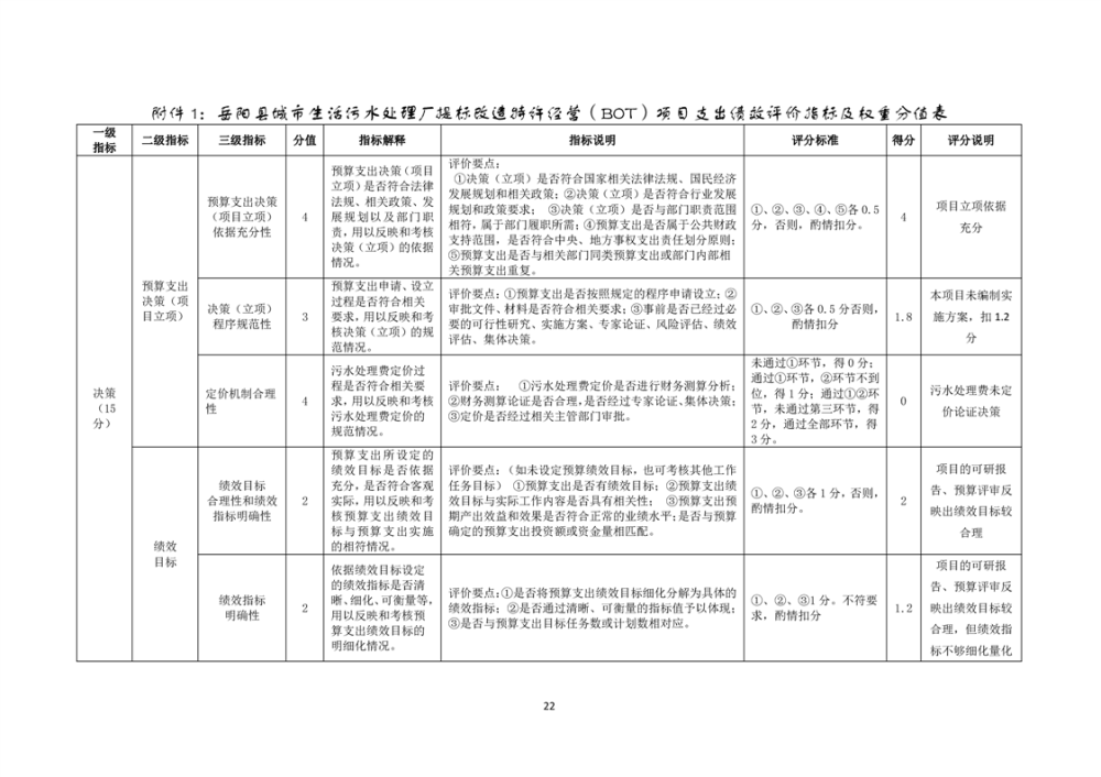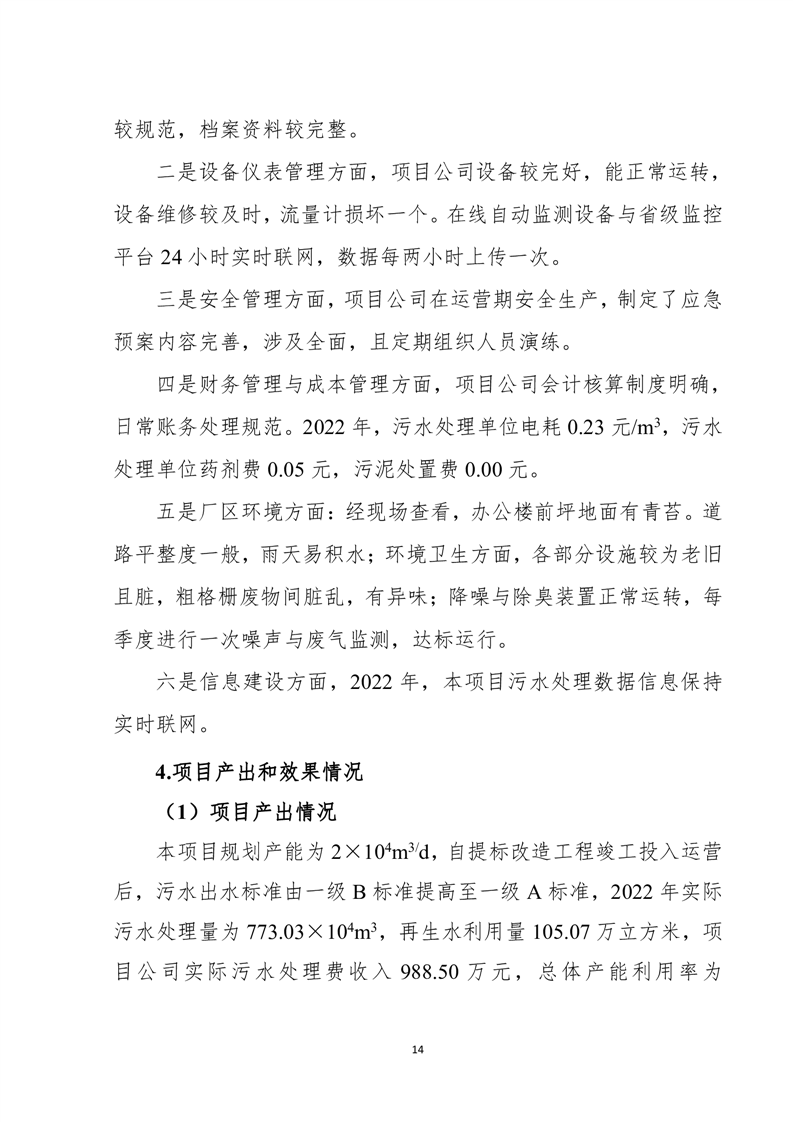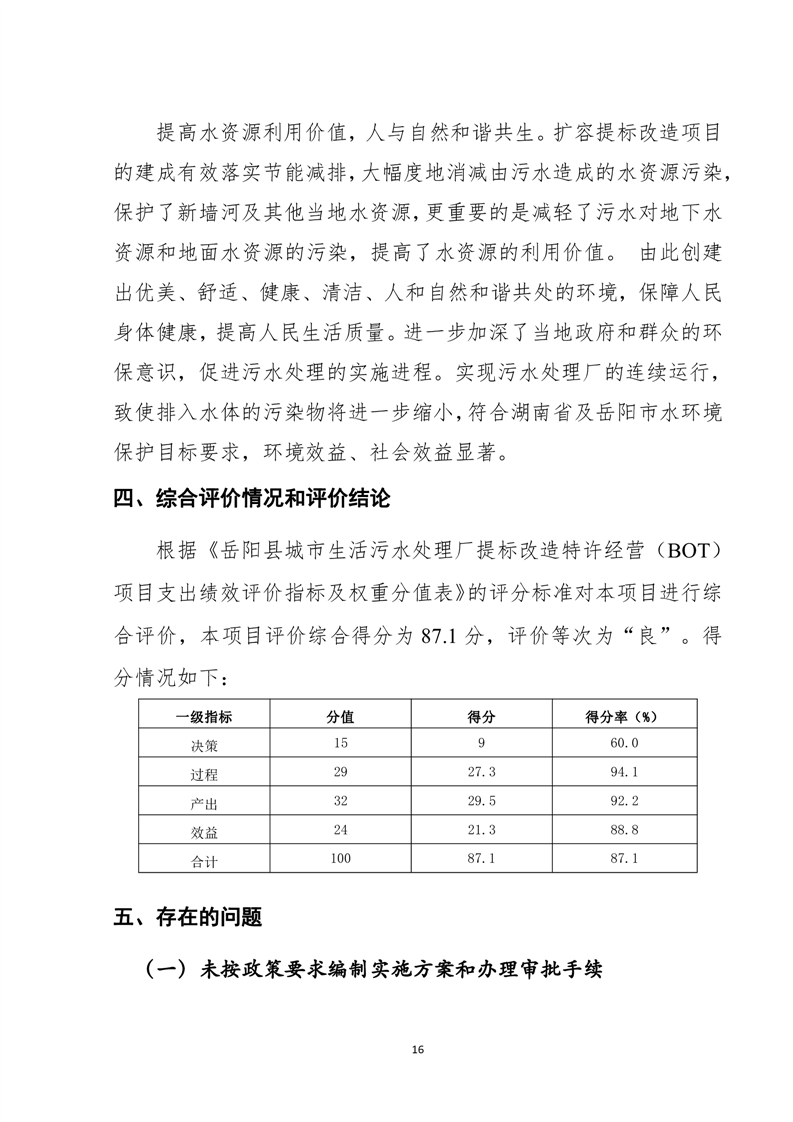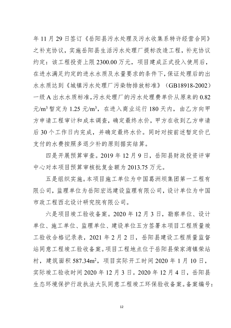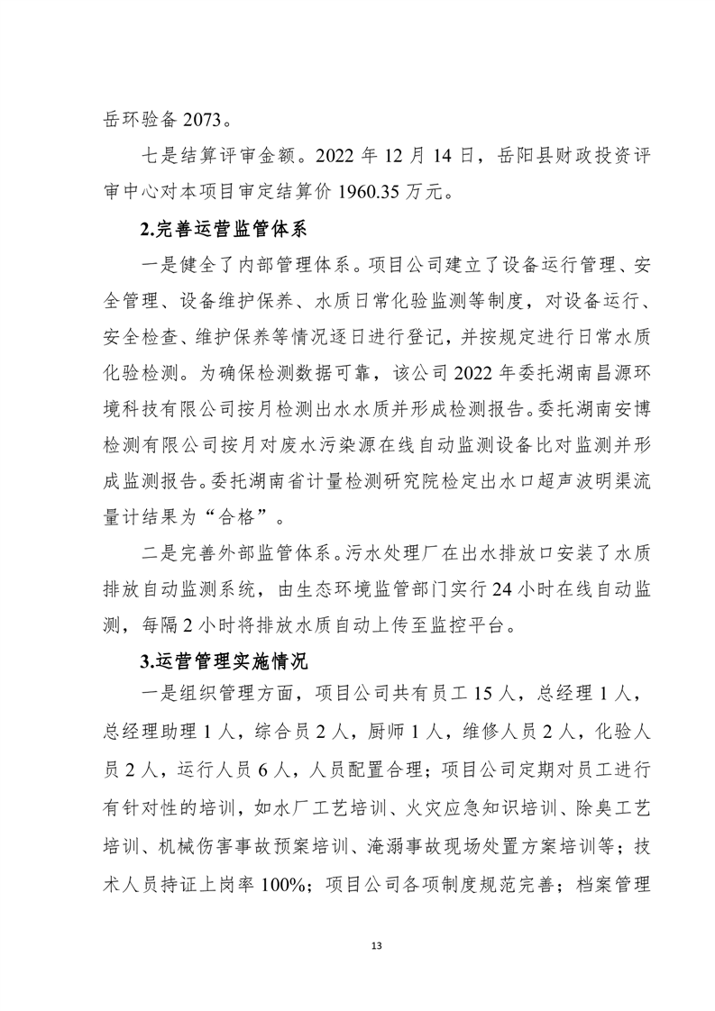 岳阳县2022年城市生活污水处理厂运营期项目支出绩效评价报告
