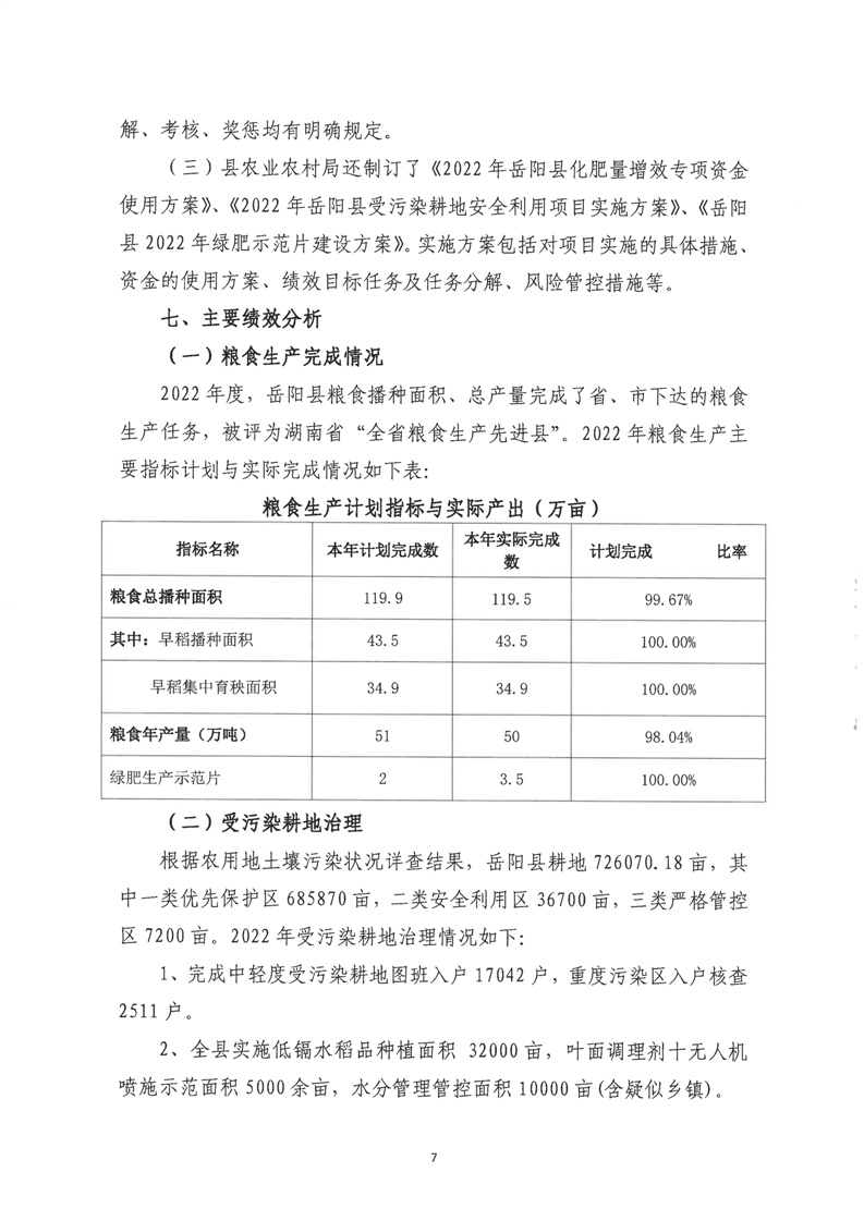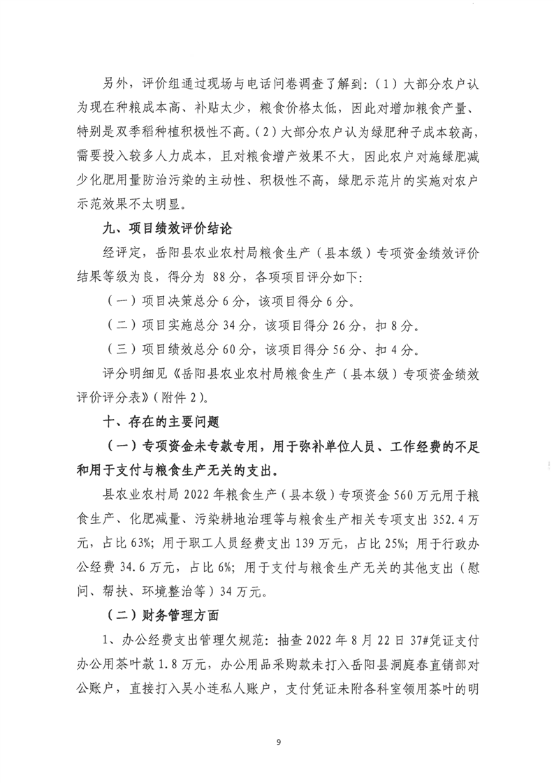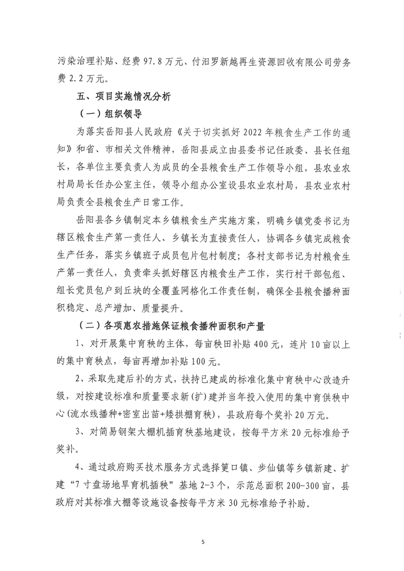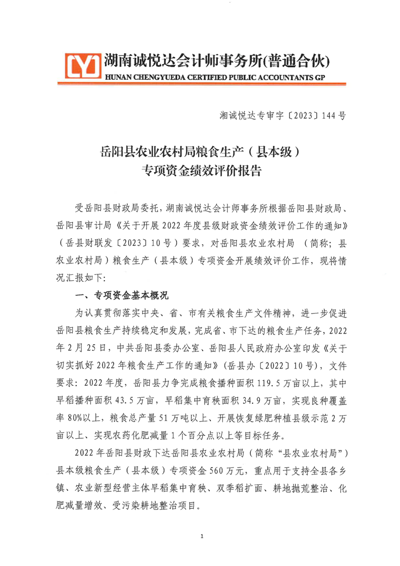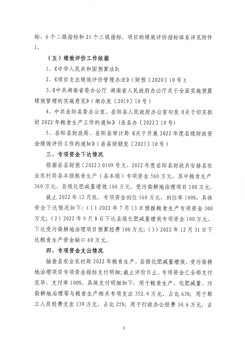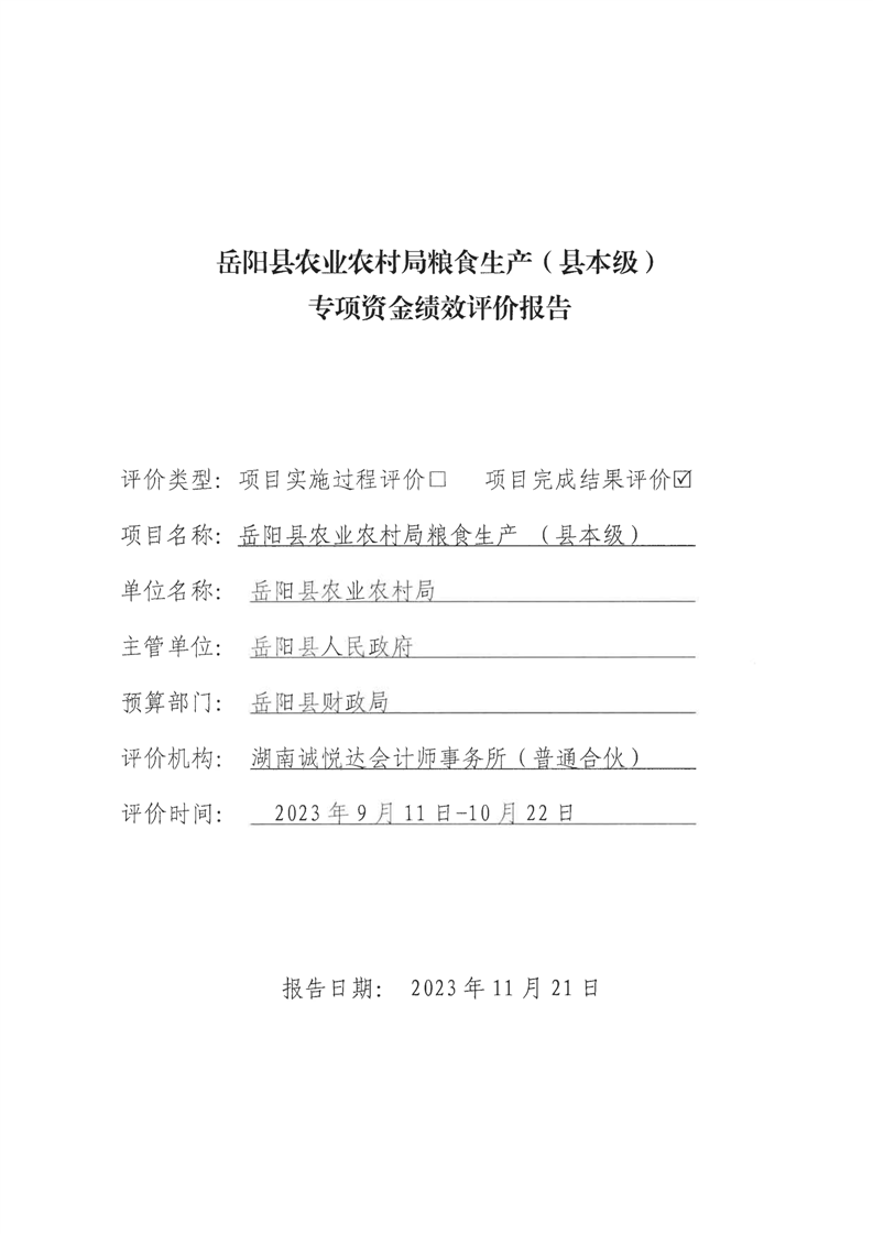 岳阳县农业农村局粮食生产(县本级)专项资金绩效评价报告