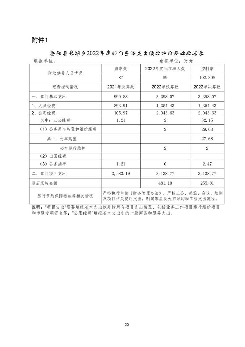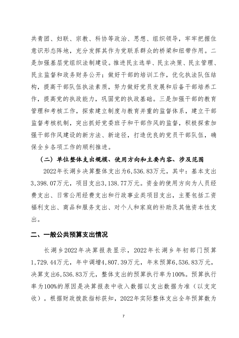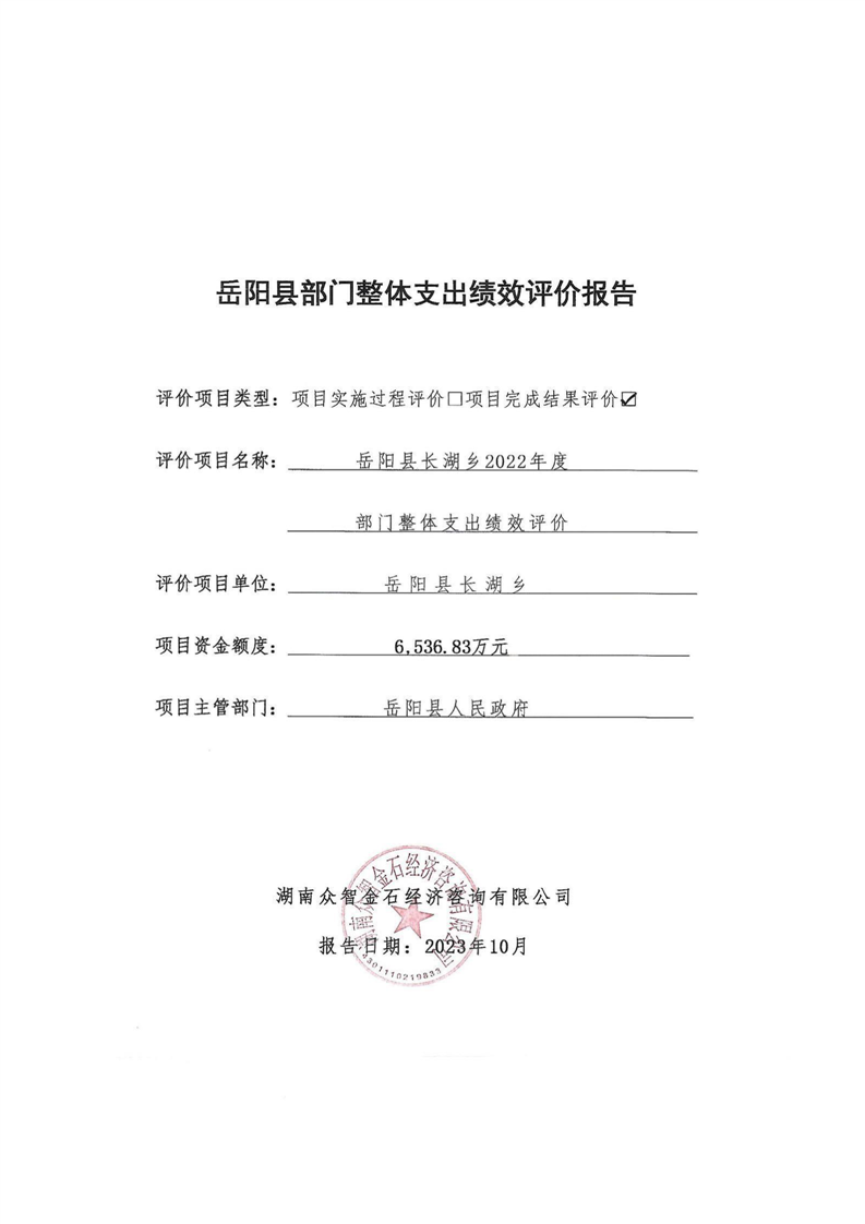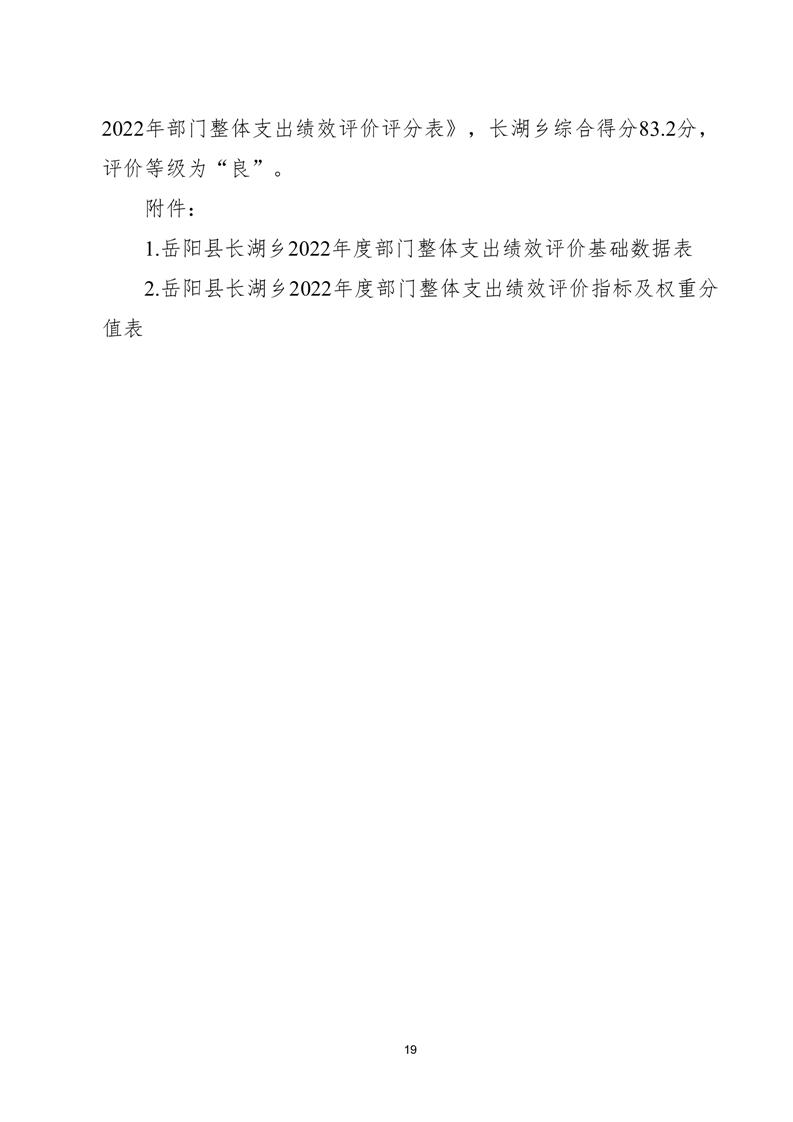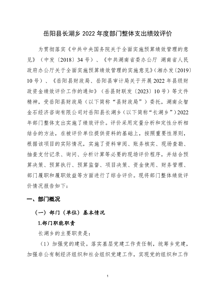 岳阳县长湖乡2022年度部门整体支出绩效评价报告