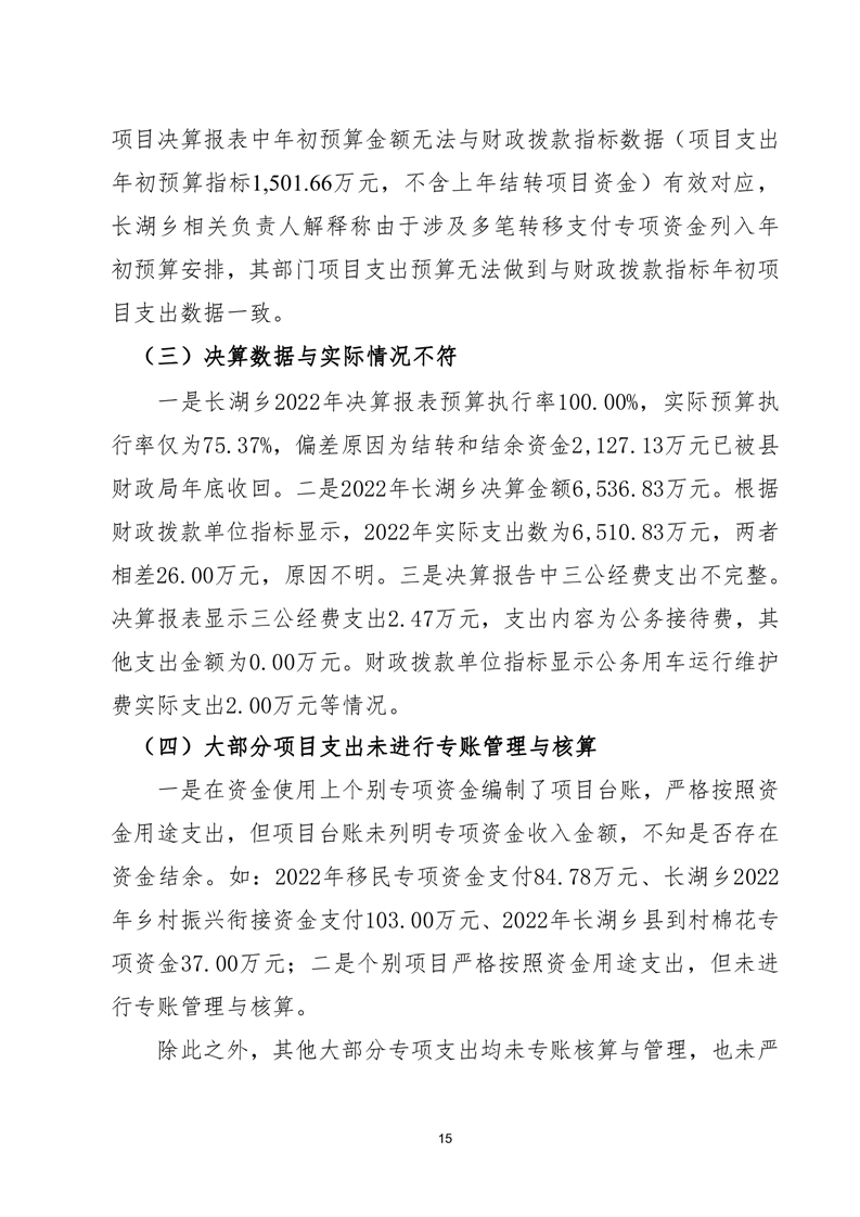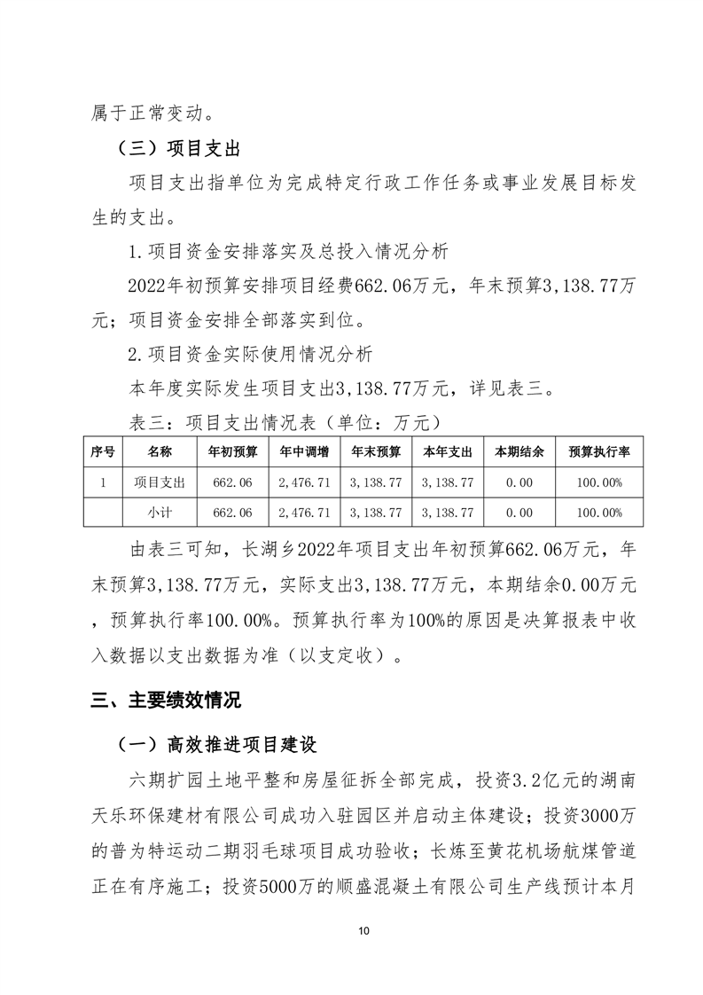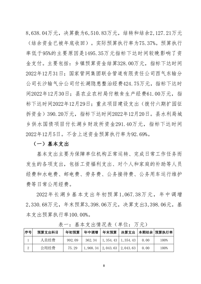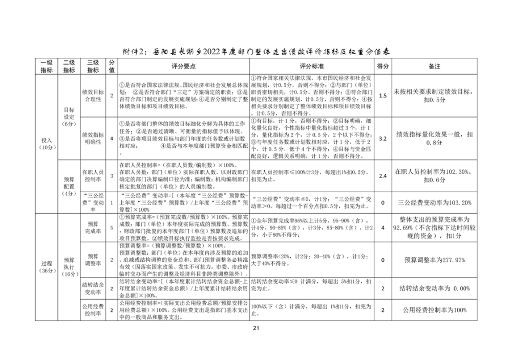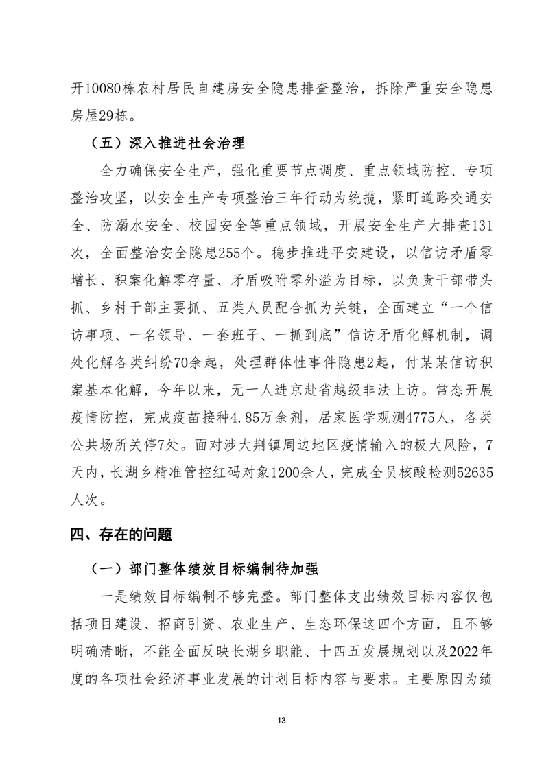 岳阳县长湖乡2022年度部门整体支出绩效评价报告
