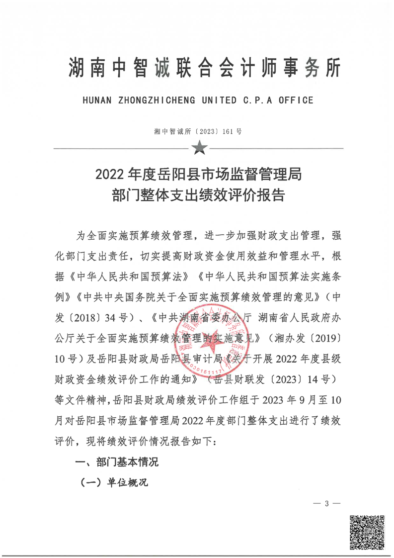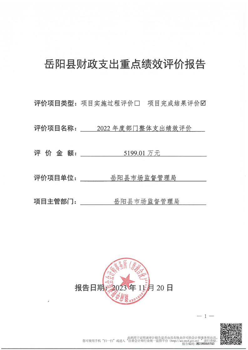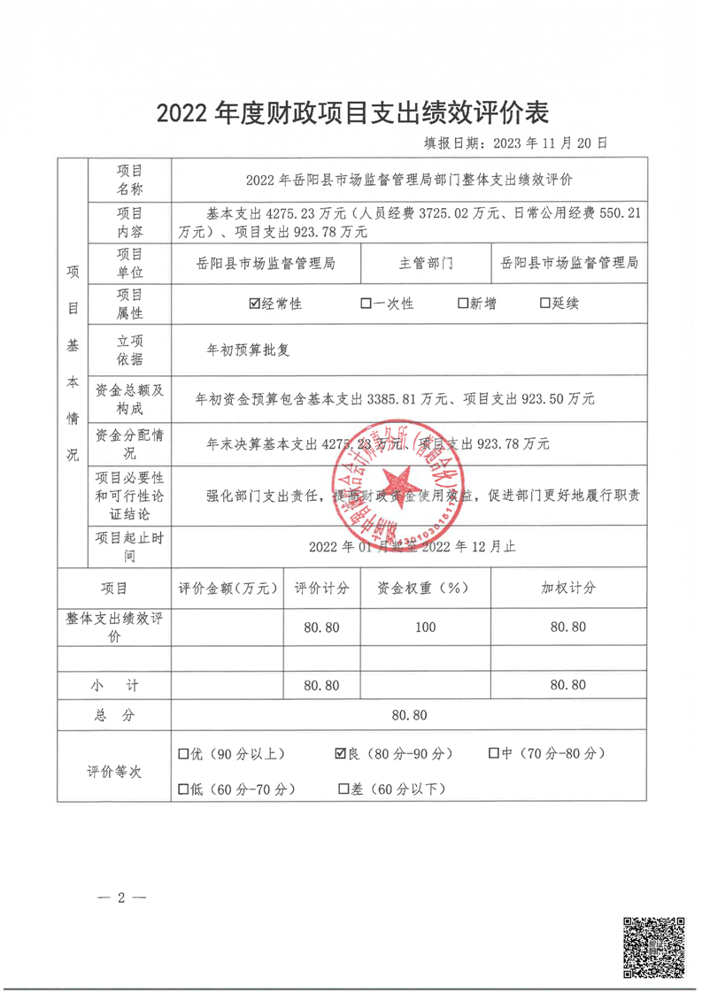 市场监督管理局2022年度部门整体支出绩效评价报告