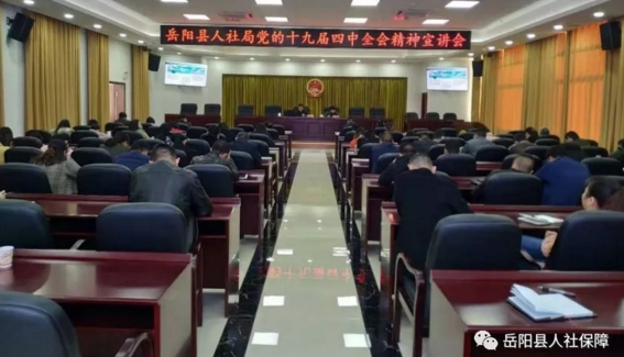 12月11日上午9时,岳阳县人社局组织召开县委宣讲团党的十九届四中全会精神报告会。会议由县人社局局长李君梅主持,县委宣讲团成员、宣传部副部长李月争出席做宣讲报告。宣传四中全会精神,并对加强干部职工党的政治建设提出要求。