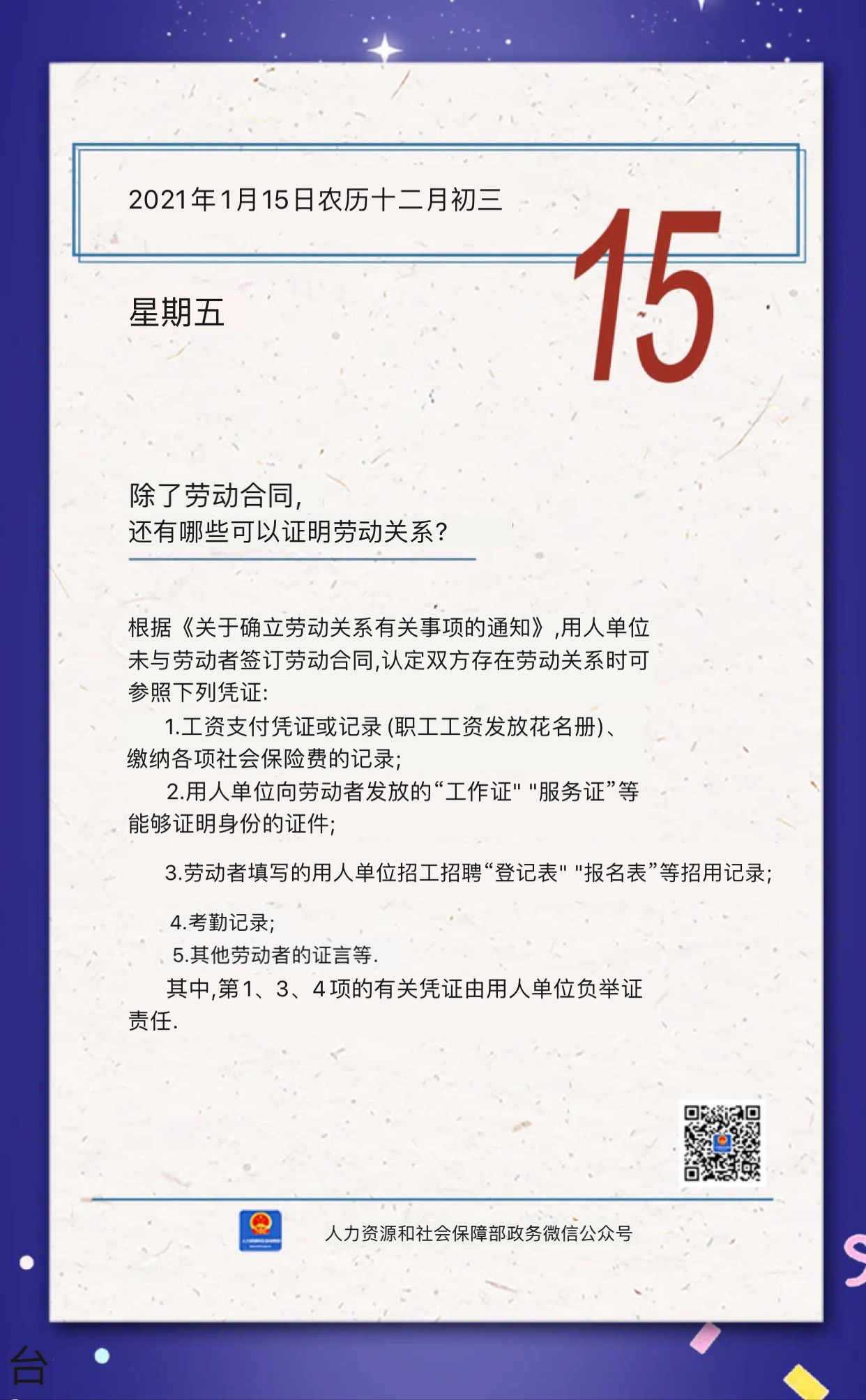 【人社日课·1月15日】除了劳动合同,还有哪些可以证明劳动关系?