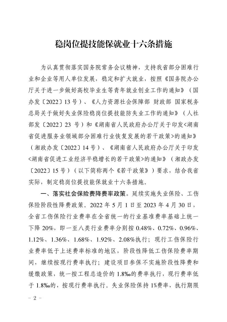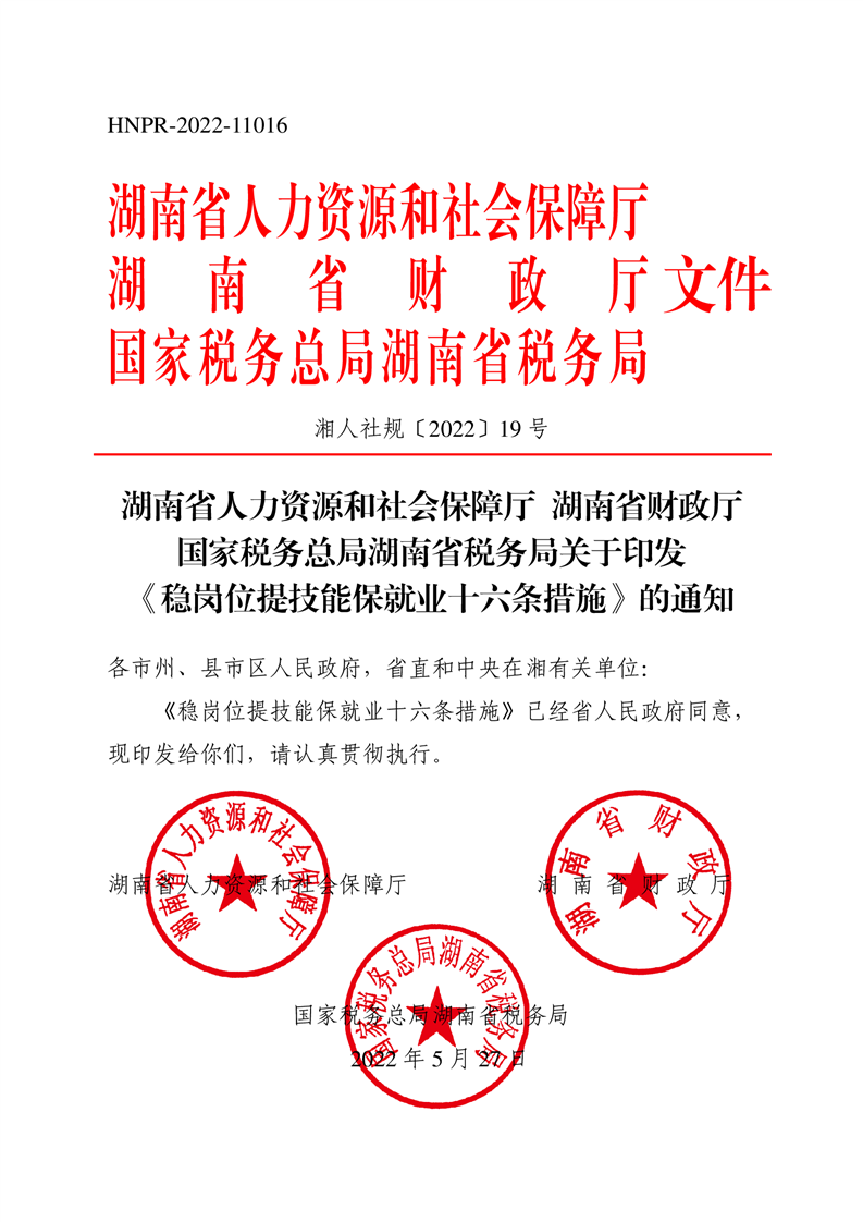 关于印发《稳岗位提技能保就业十六条措施》的通知