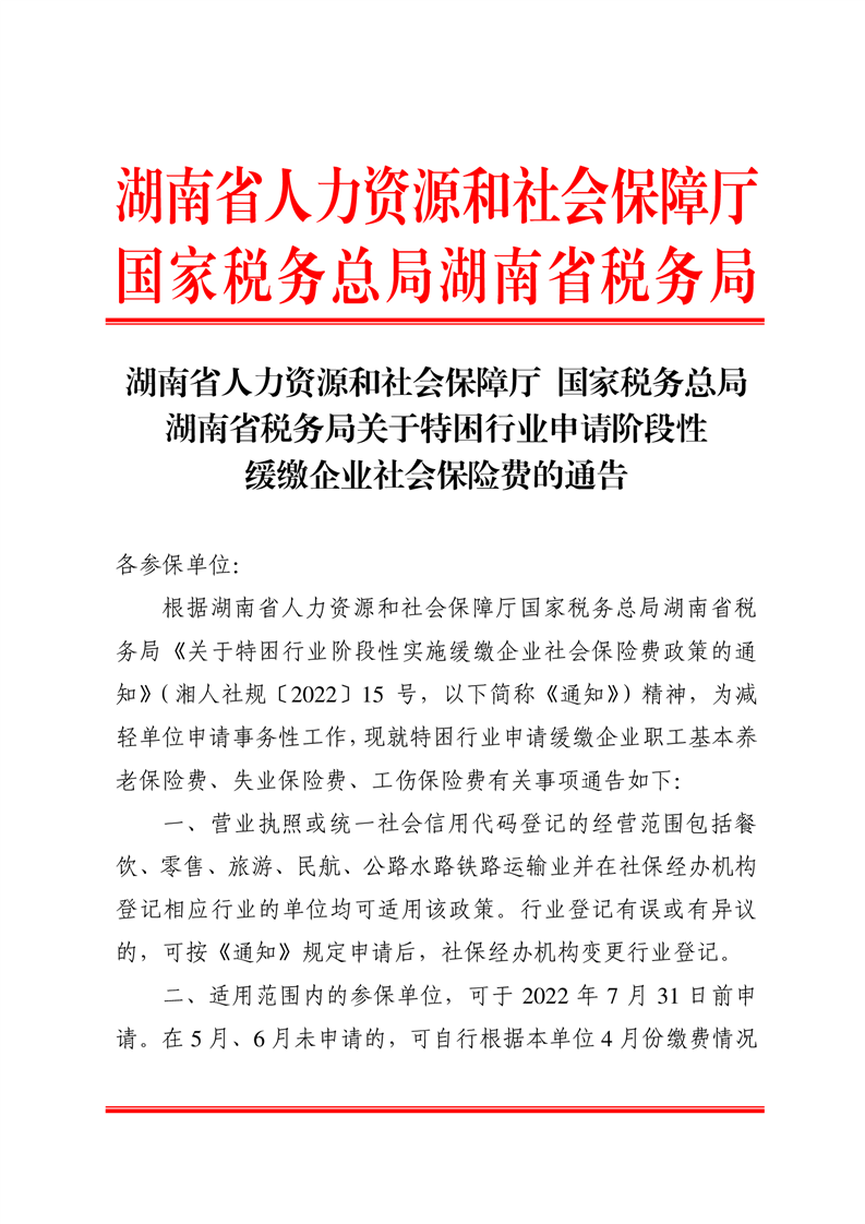 关于特困行业申请阶段性缓缴企业社会保险费的通告