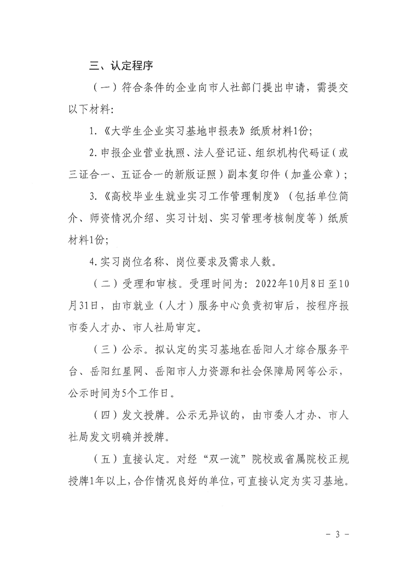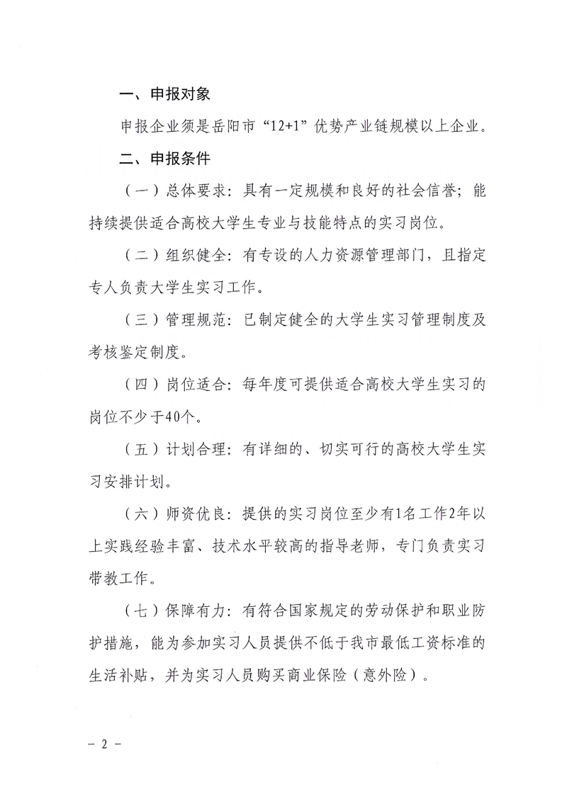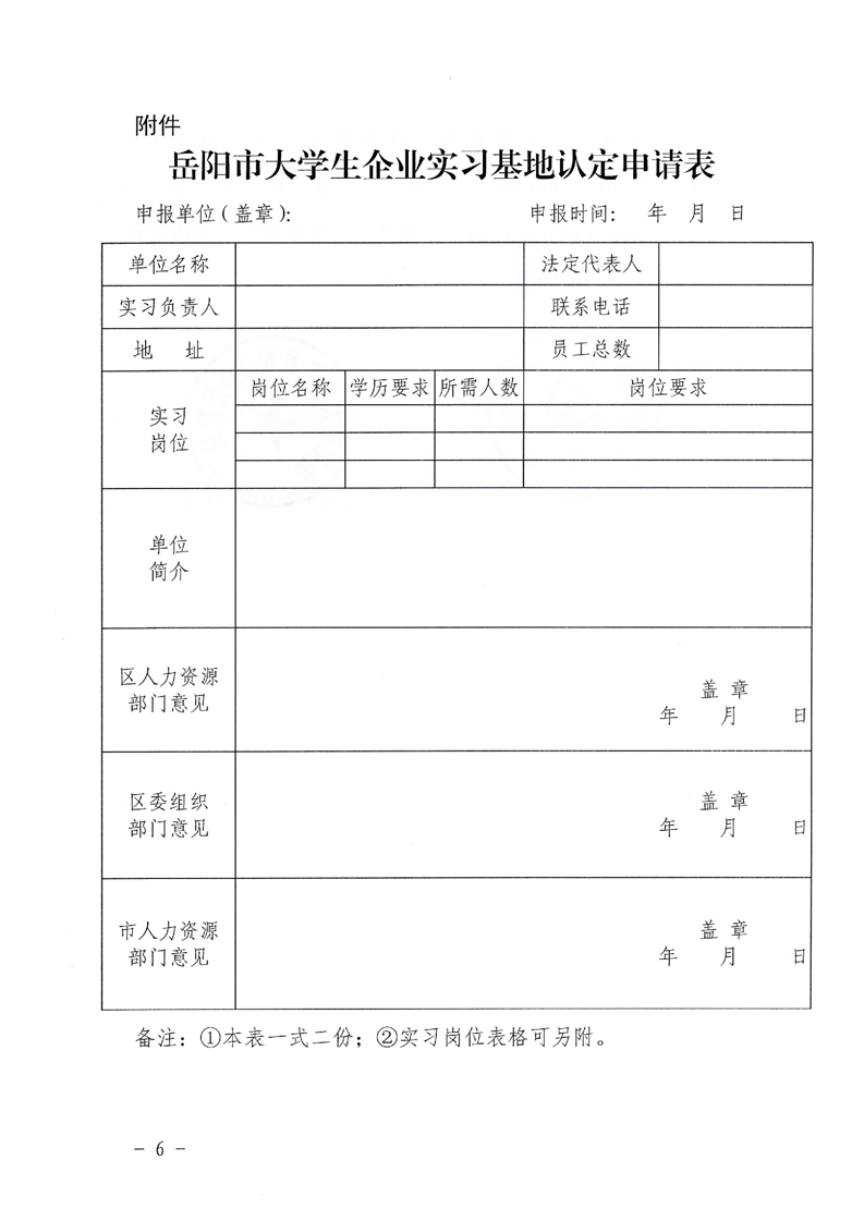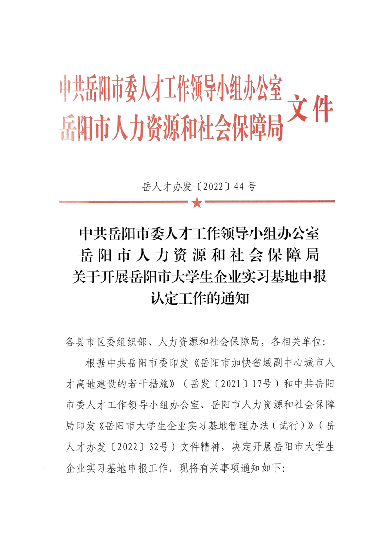 关于开展岳阳市大学生企业实习基地申报认定工作的通知