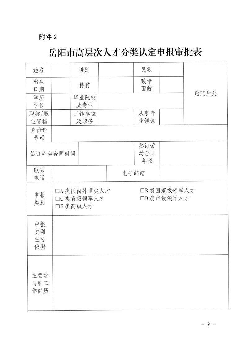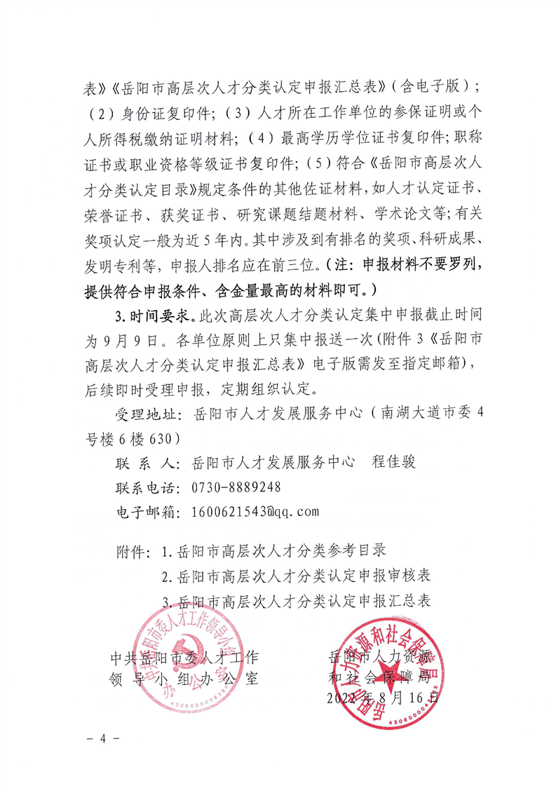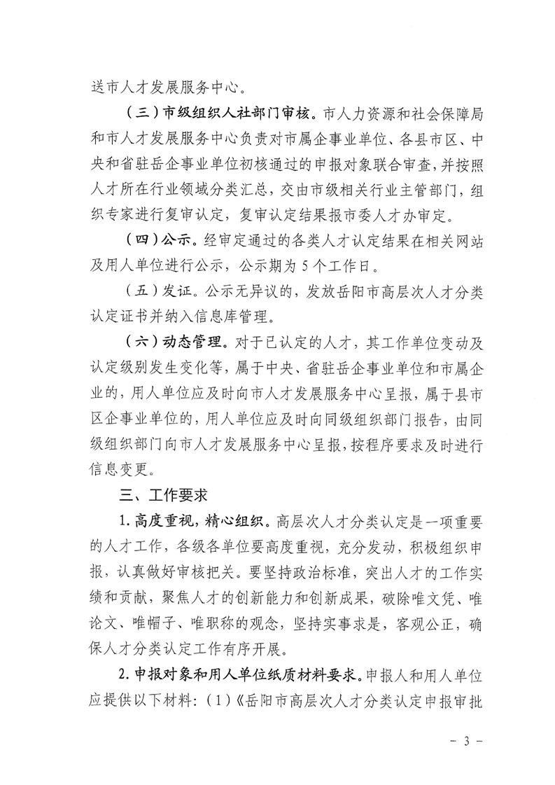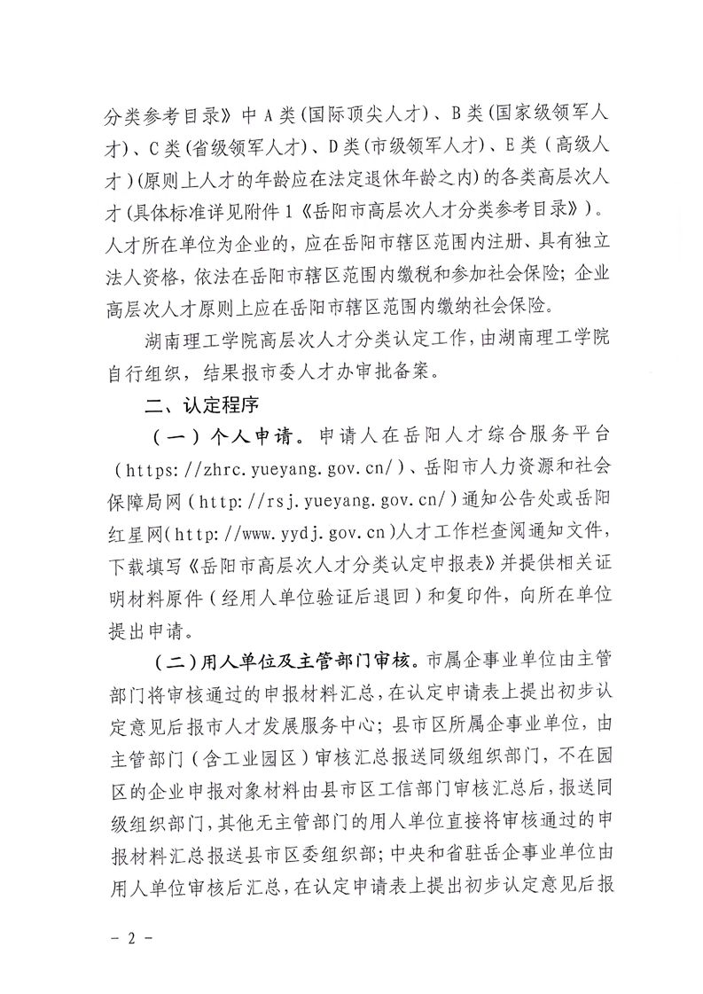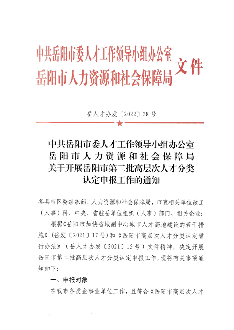 关于开展岳阳市第二批高层次人才分类认定申报工作的通知