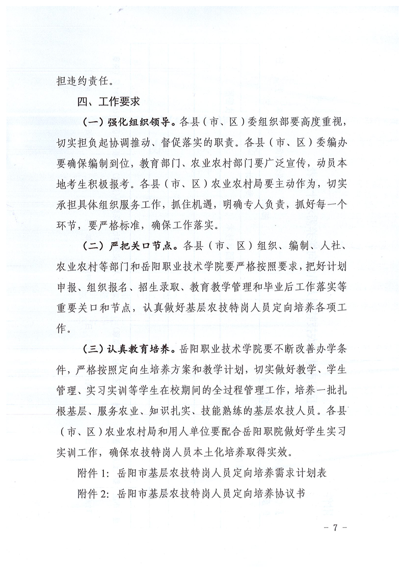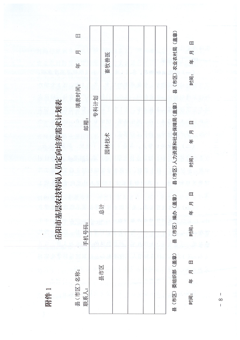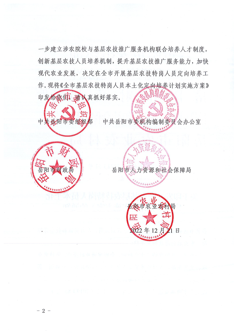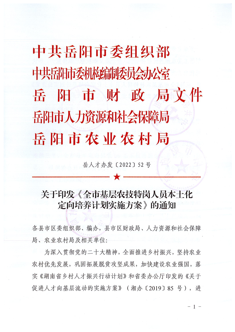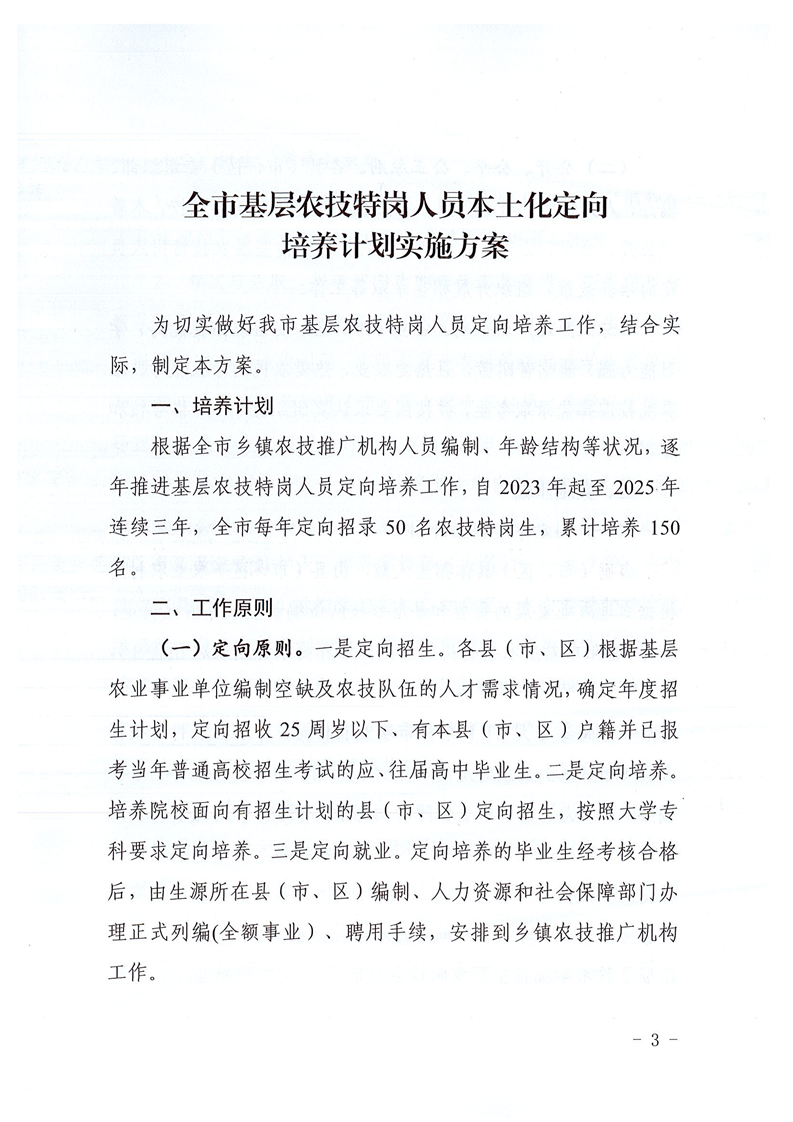 关于印发《全市基层农技特岗人员本土化定向培养计划实施方案》的通知