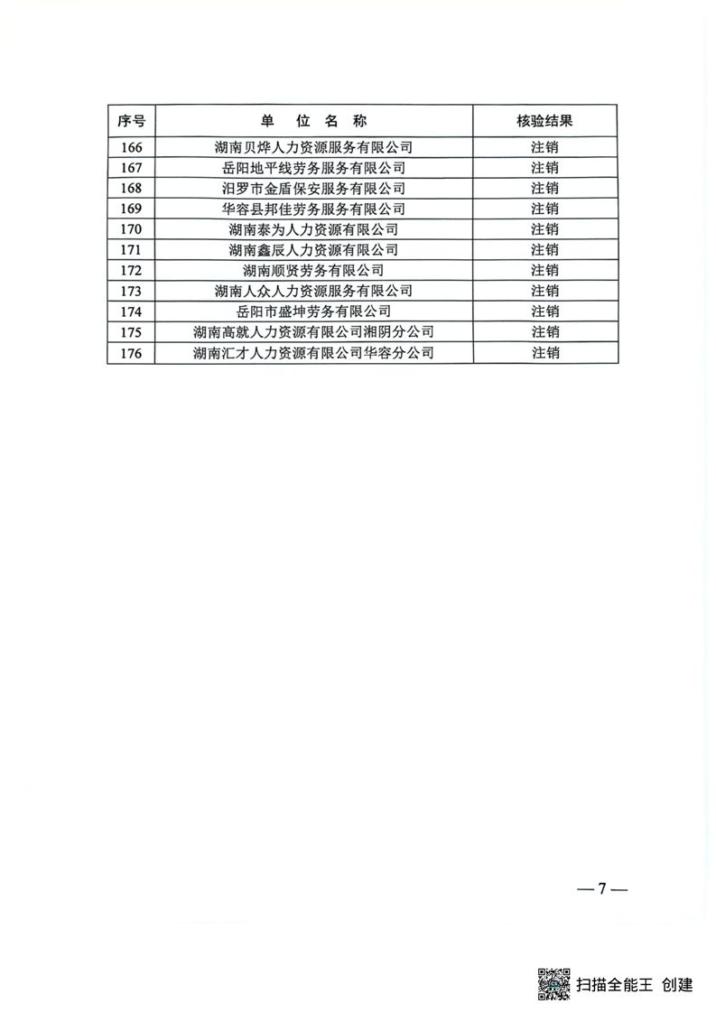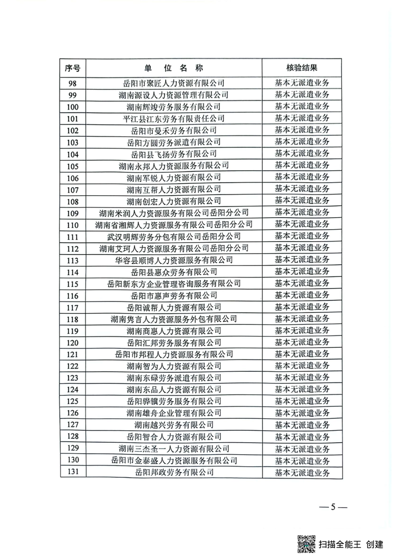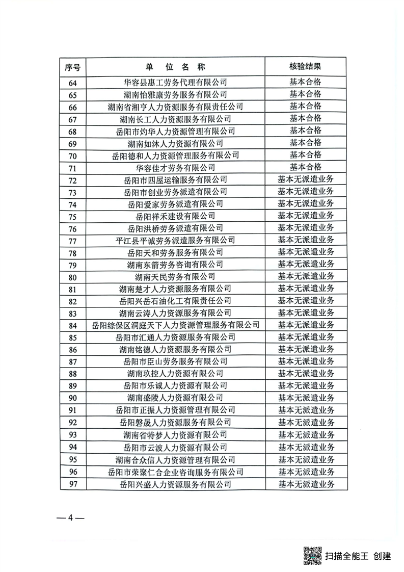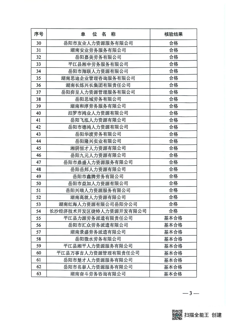 关于2023年度岳阳市劳务派遣单位核验结果的通报