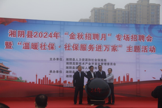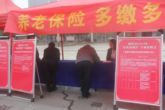 2024年11月15日,上午9点,按照省文件精神,湘阴县人社局在县嵩韬广场开展2024年“金秋招聘月”专场招聘会暨“温暖社保·社保服务进万家”的现场宣传活动。