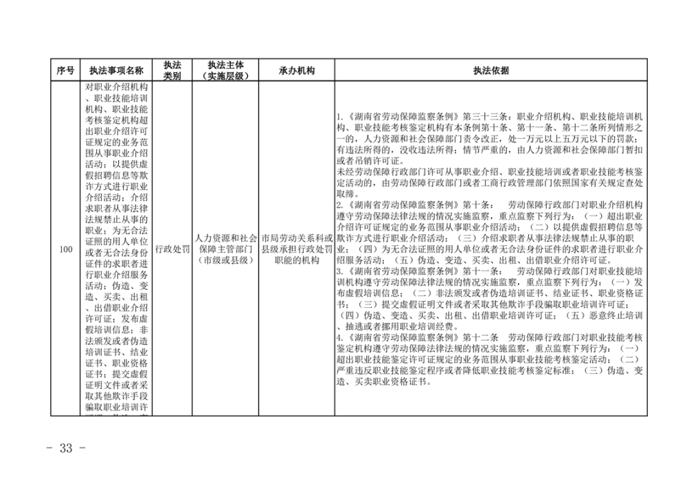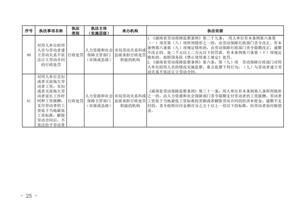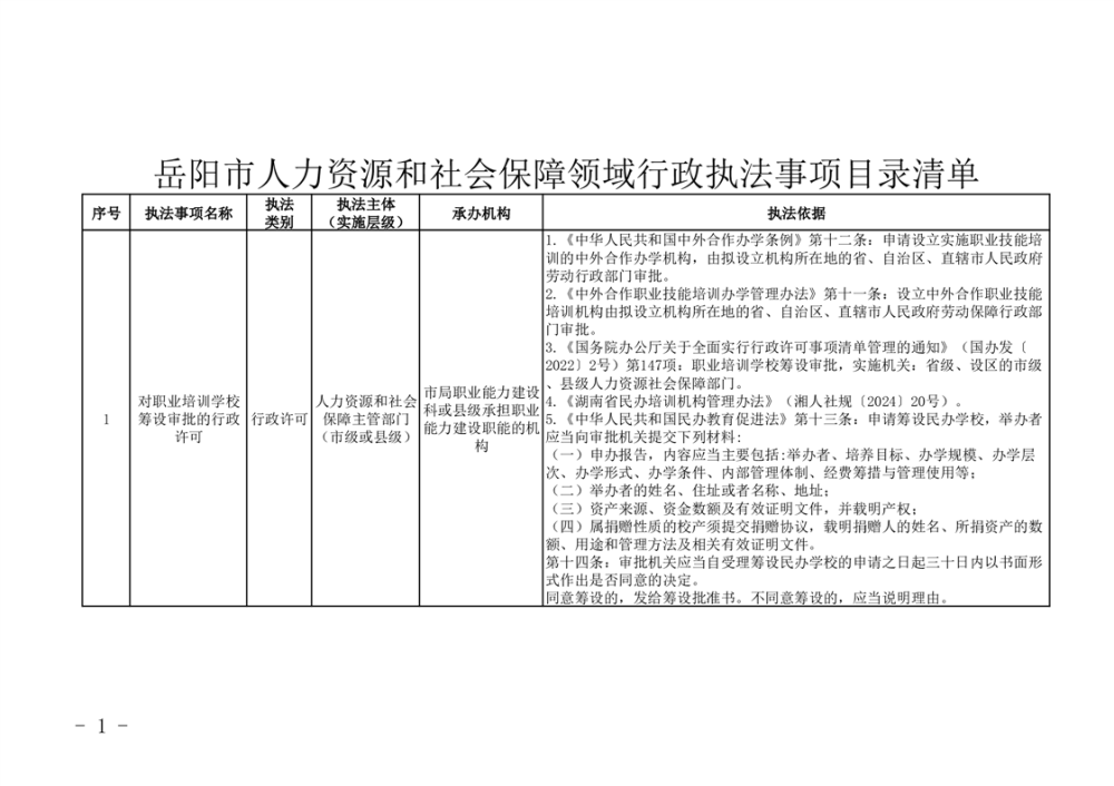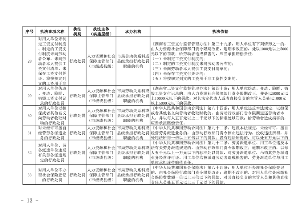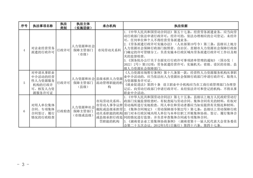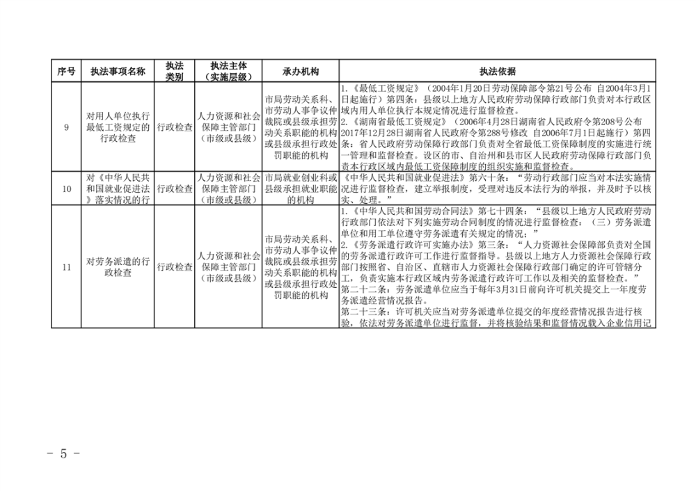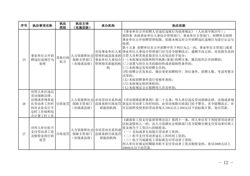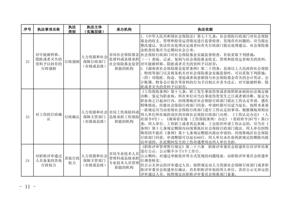 岳阳市人力资源和社会保障领域行政执法事项目录清单
