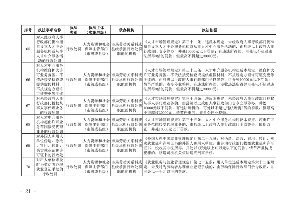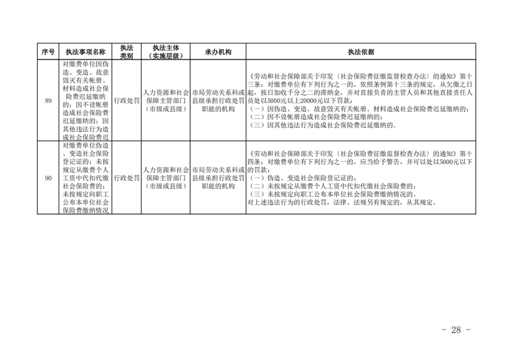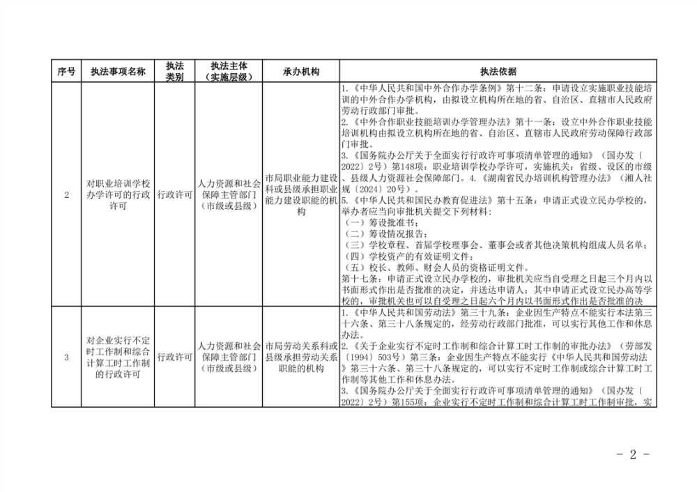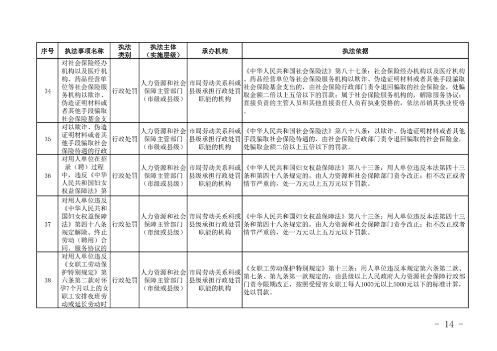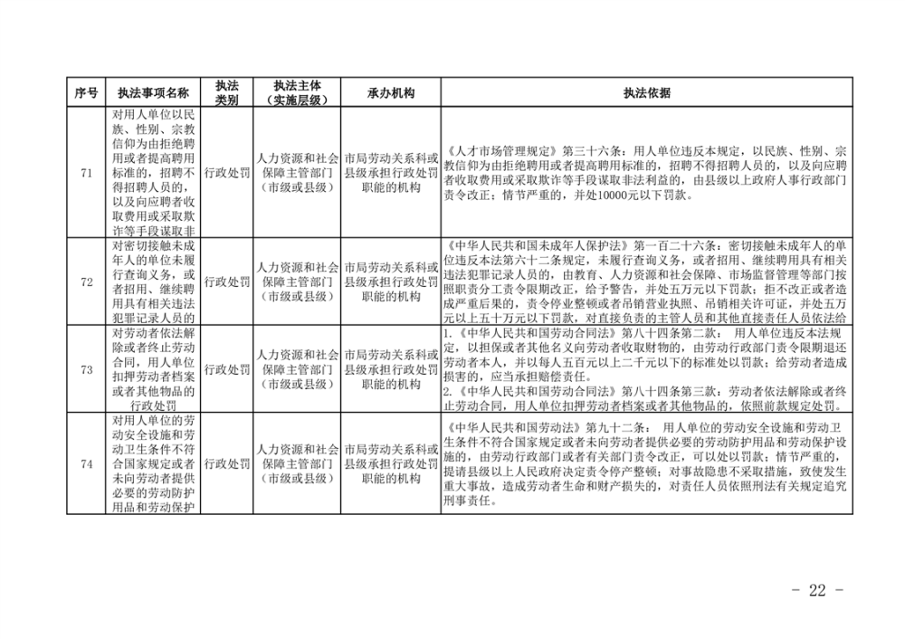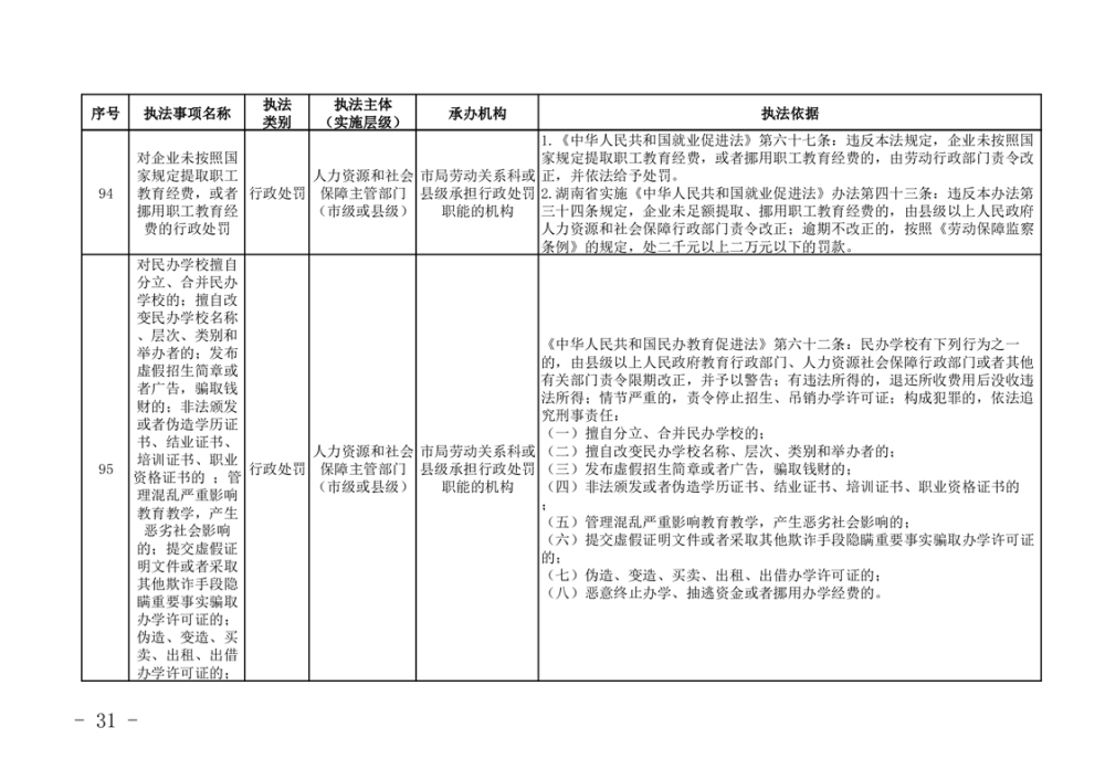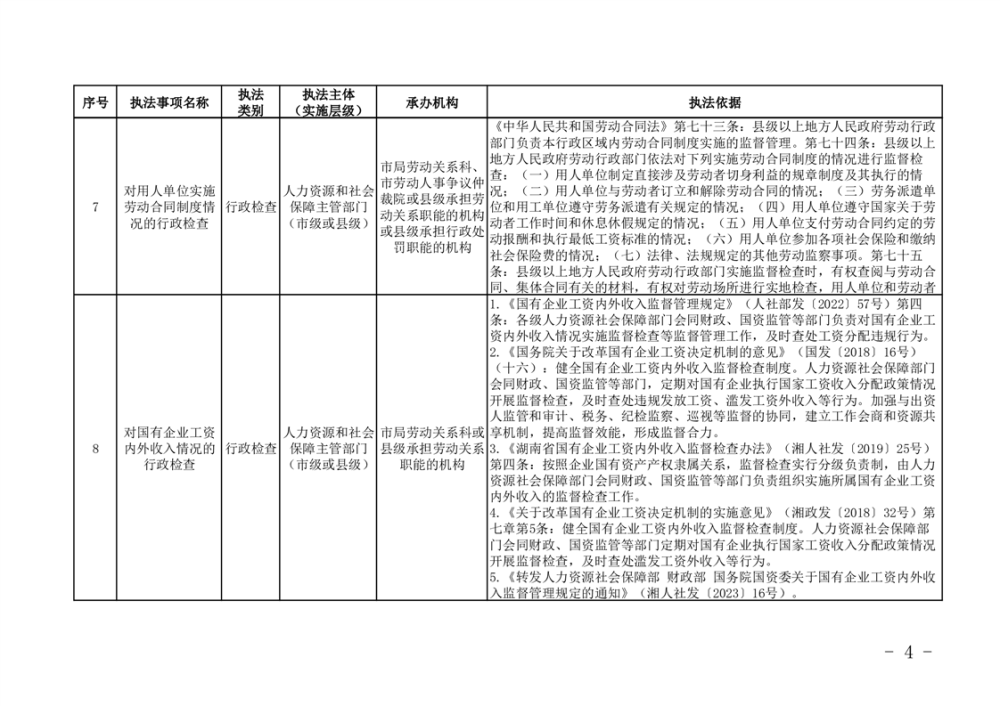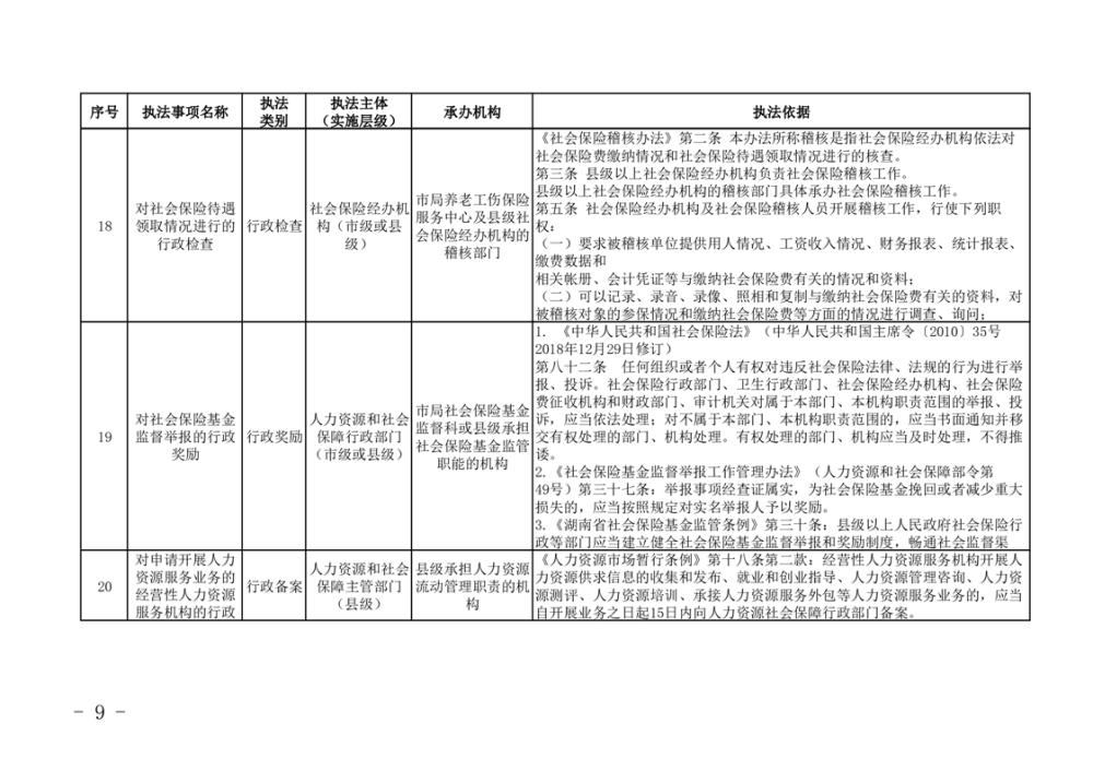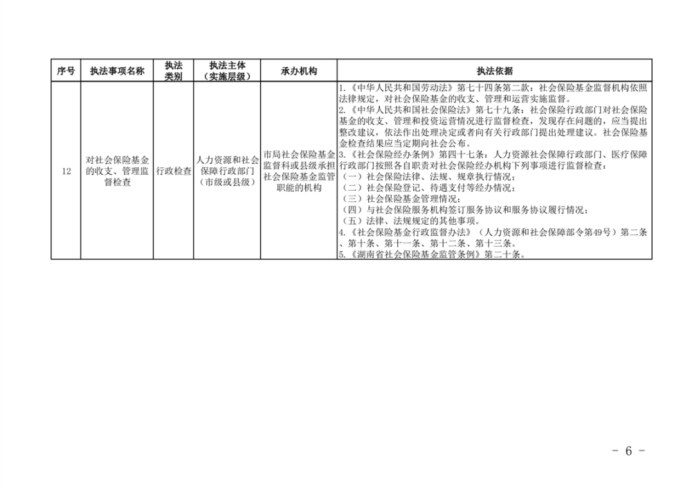 岳阳市人力资源和社会保障领域行政执法事项目录清单