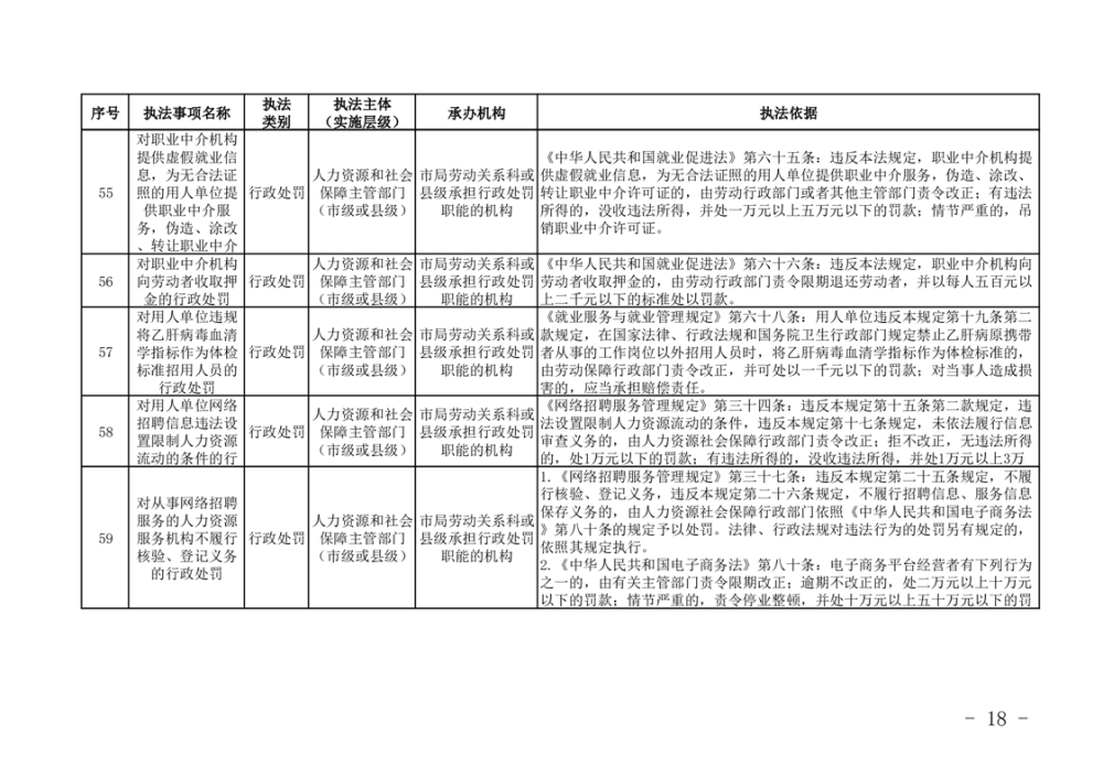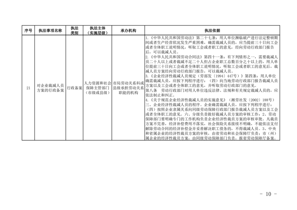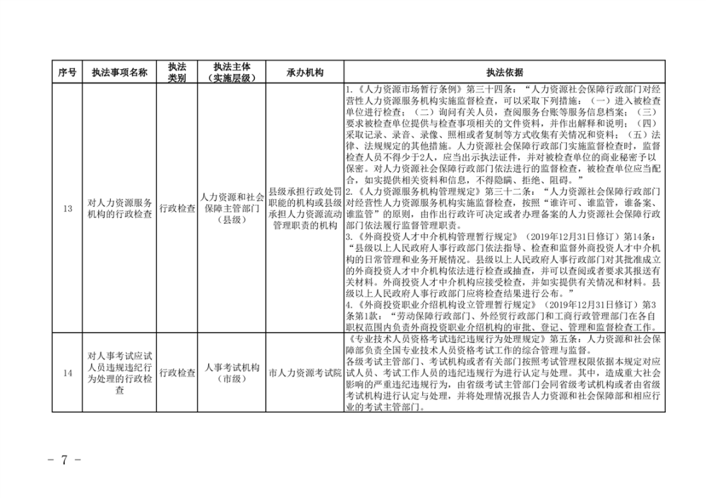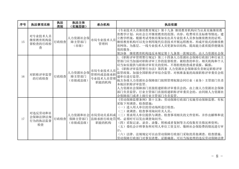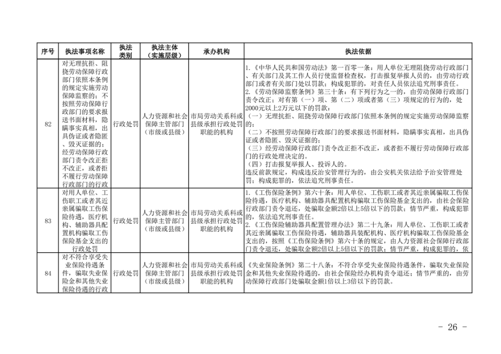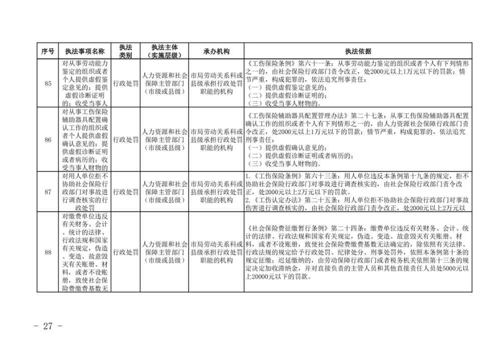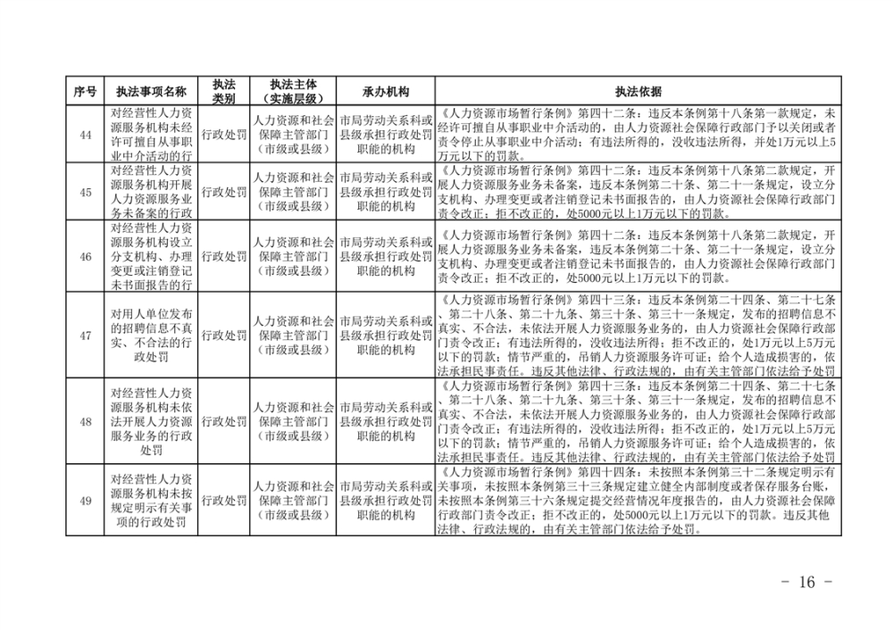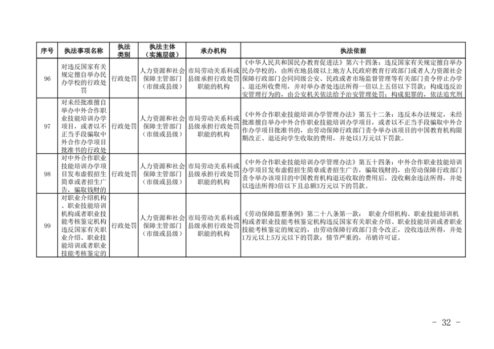 岳阳市人力资源和社会保障领域行政执法事项目录清单