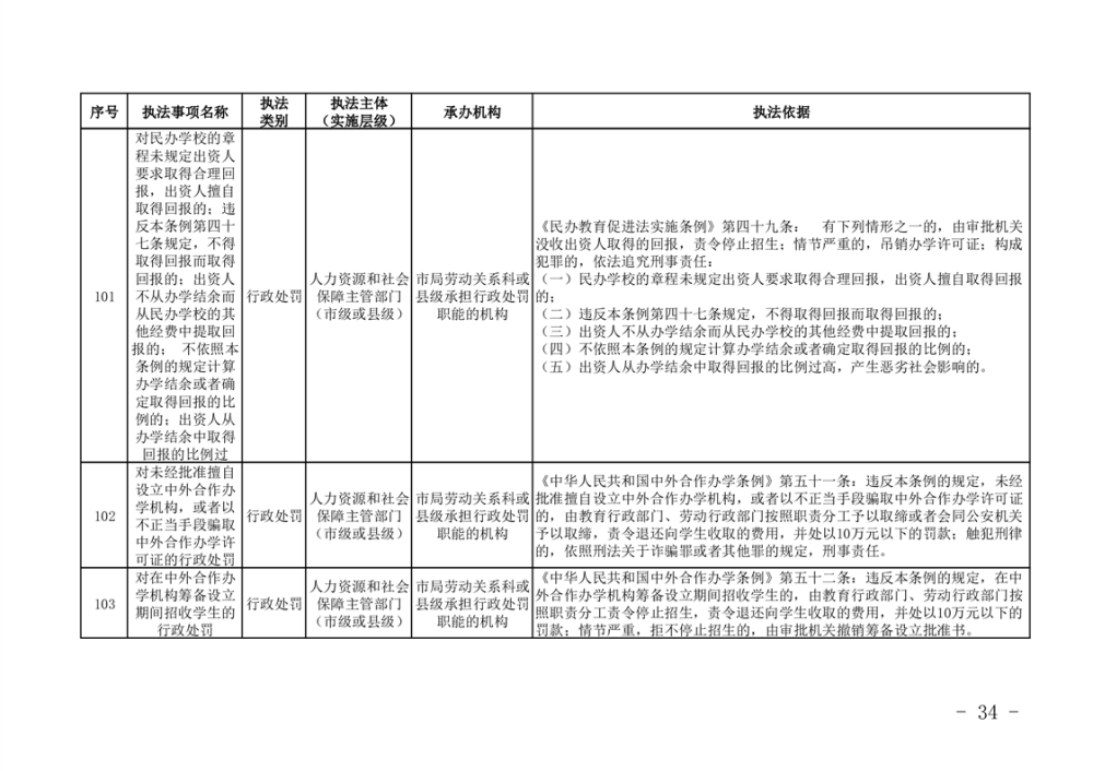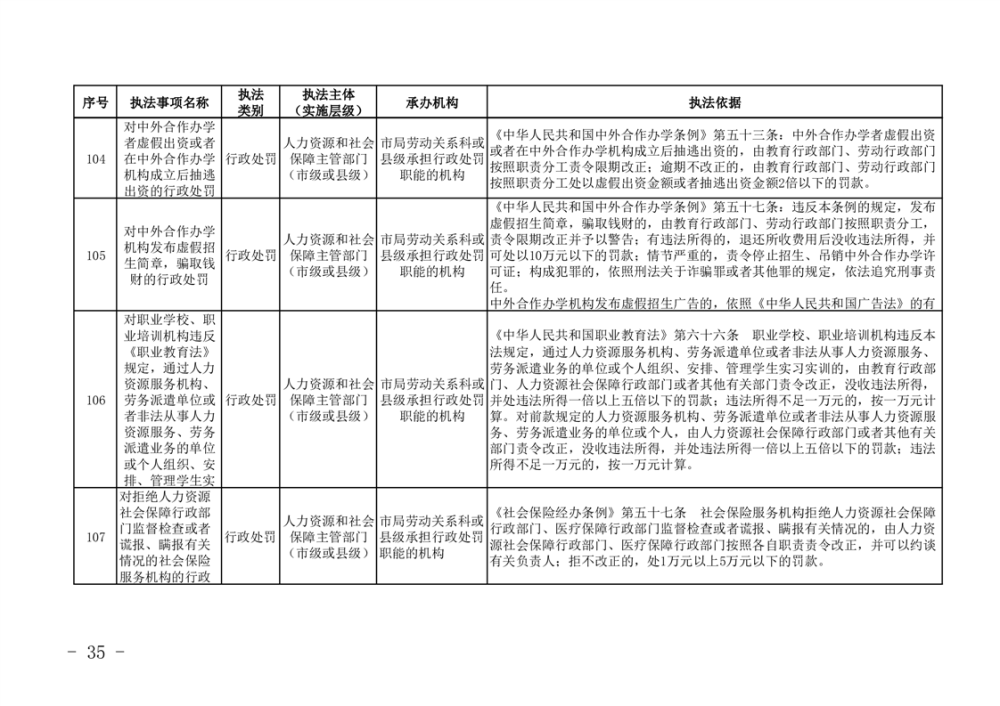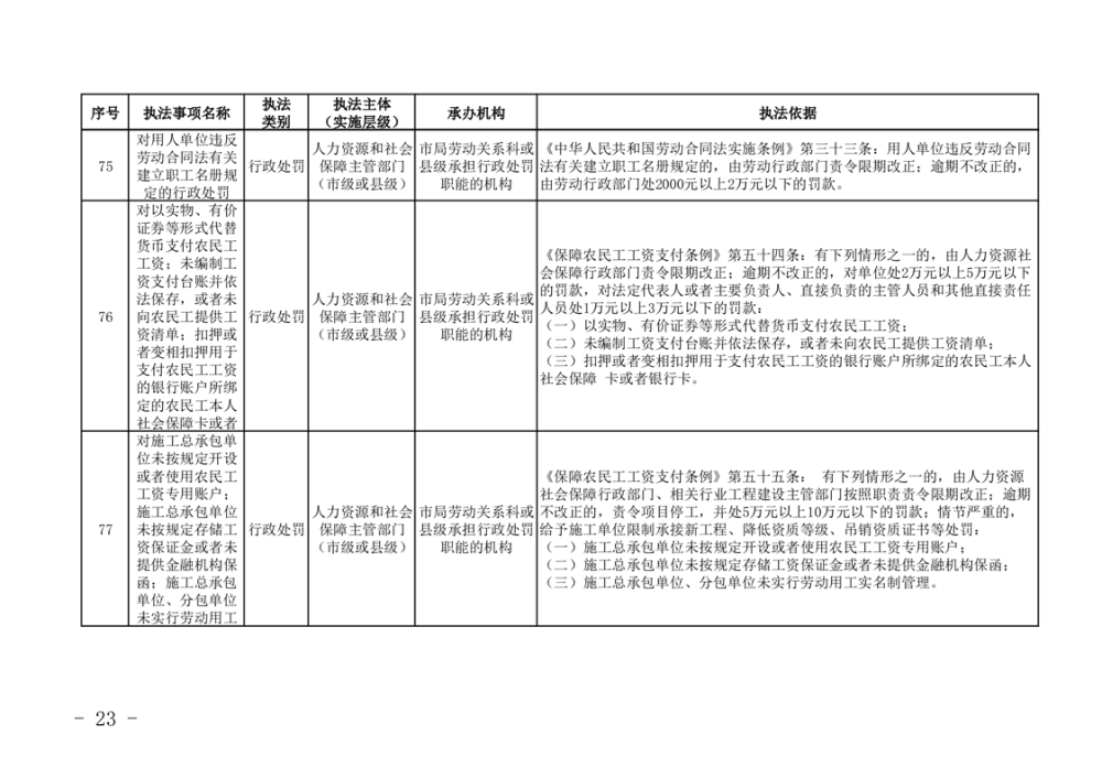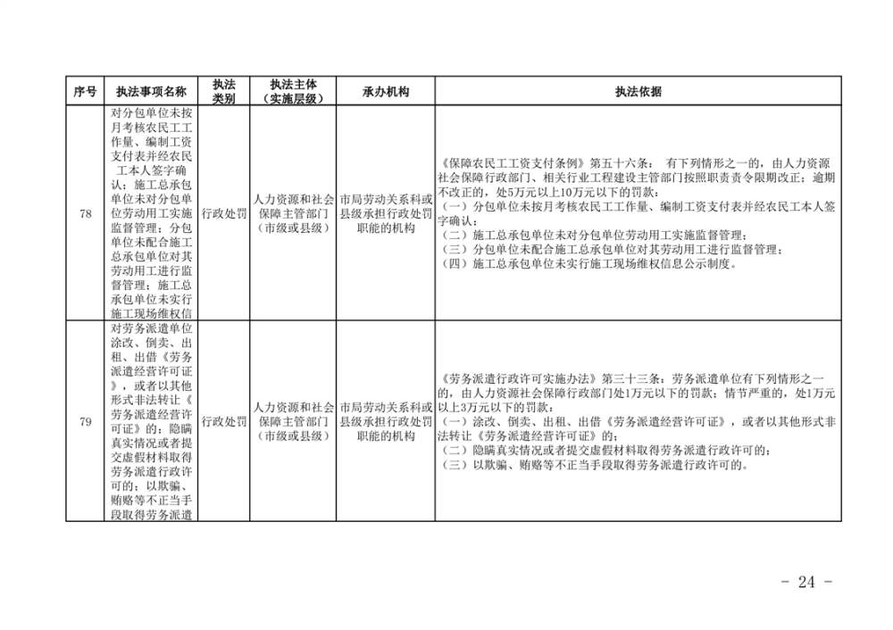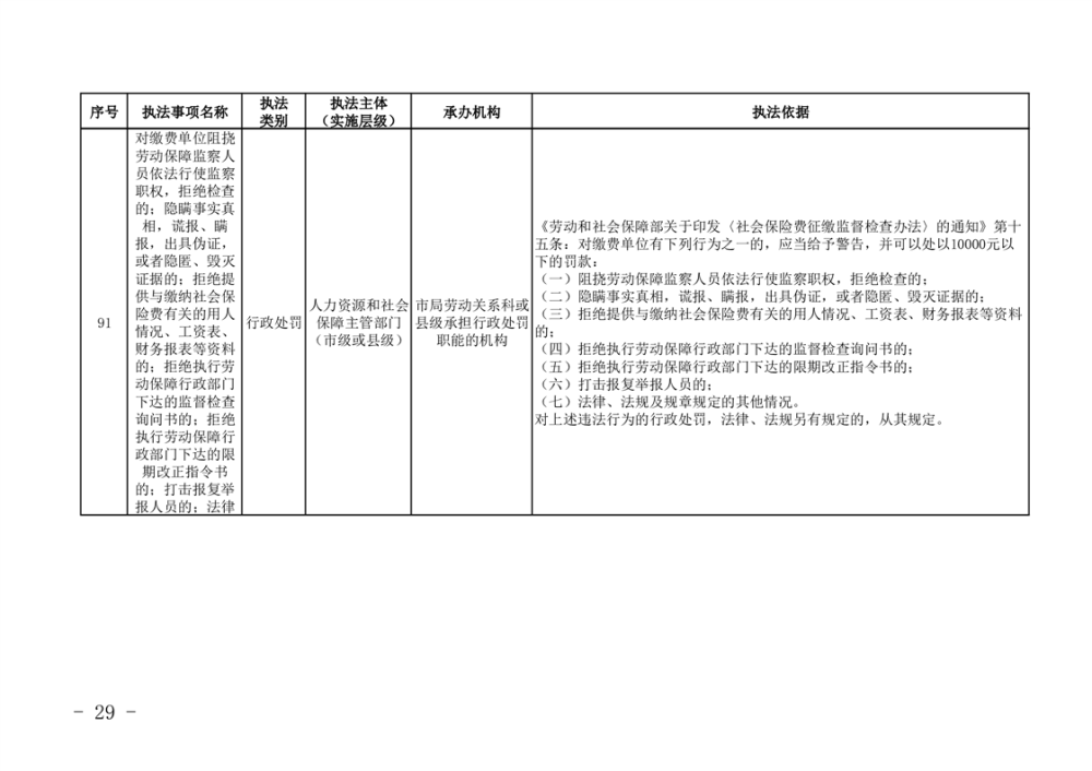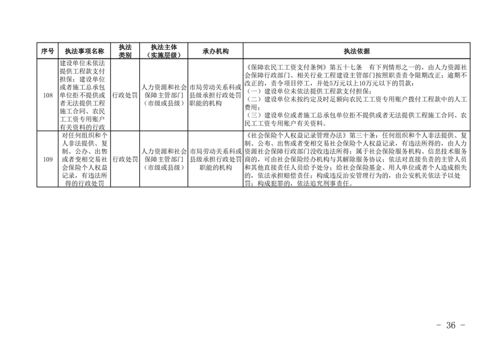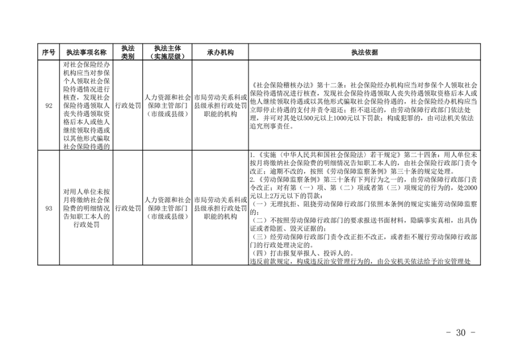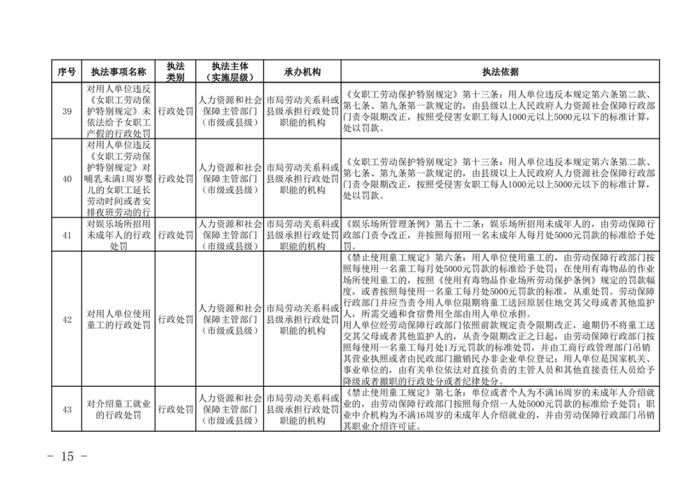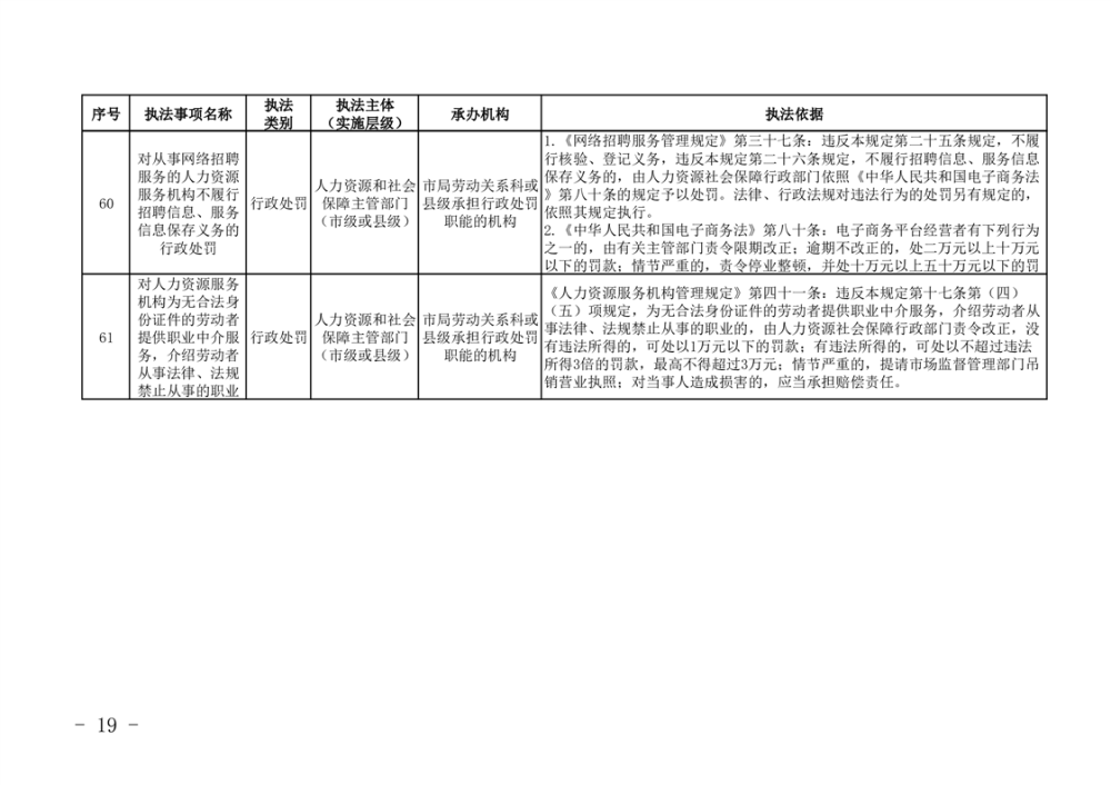 岳阳市人力资源和社会保障领域行政执法事项目录清单