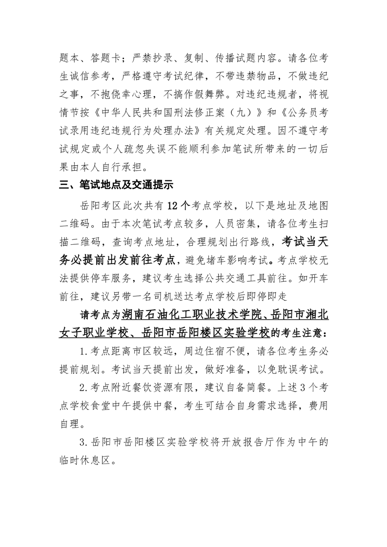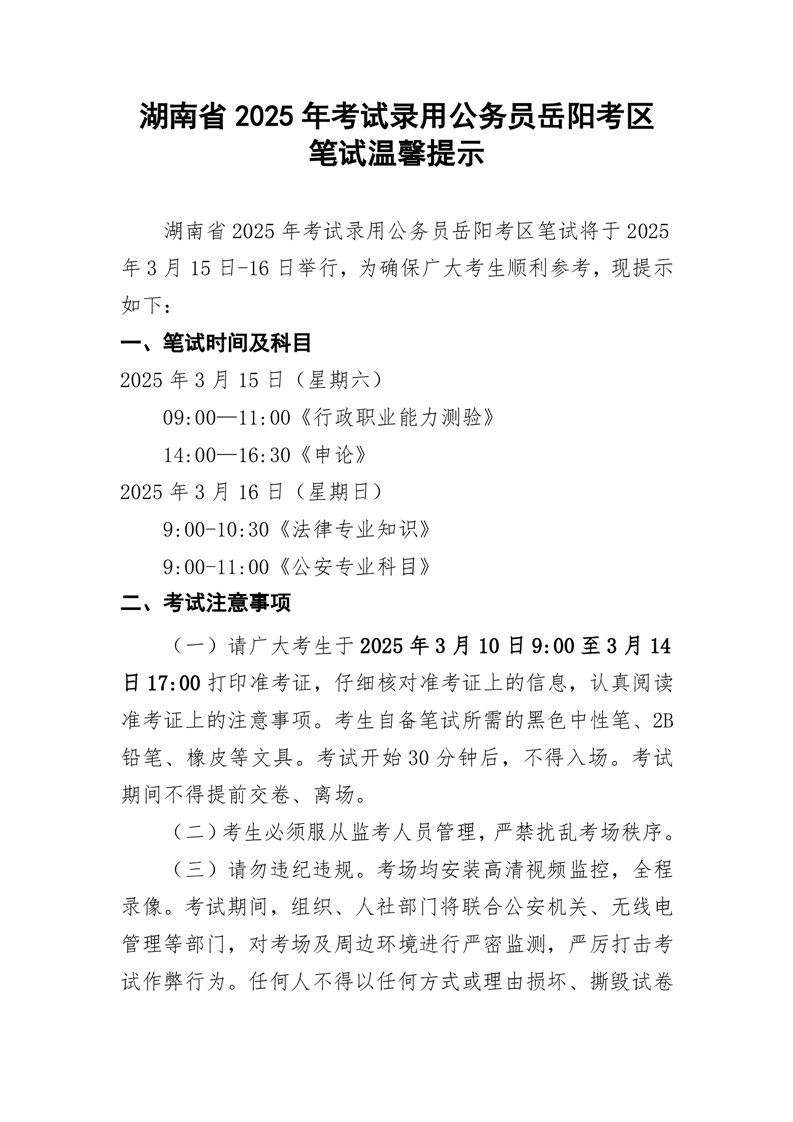 湖南省2025年考试录用公务员岳阳考区笔试温馨提示