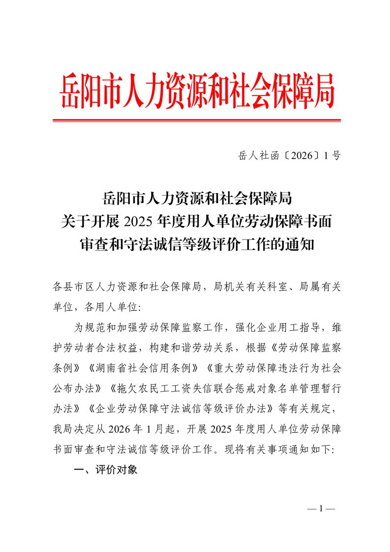 关于开展2025年度用人单位劳动保障书面审查和守法诚信等级评价工作的通知