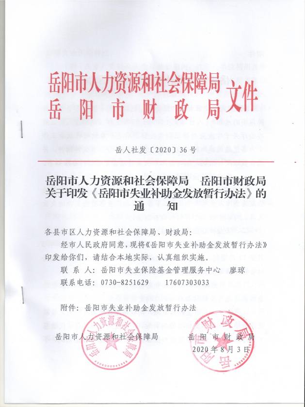 岳阳市人力资源和社会保障局办公室 2020年8月3日印发