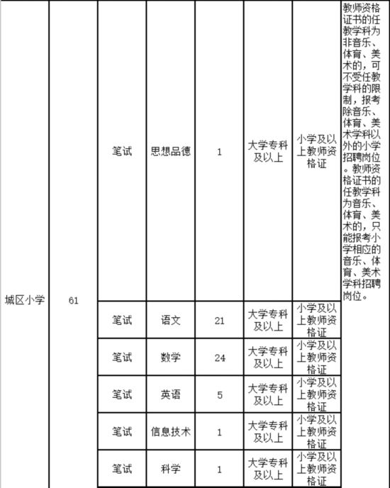 ③小学教师岗位的笔试内容为公共知识和专业知识,公共知识为教育学、心理学,占10%,专业知识为小学语数综合知识,占90%。