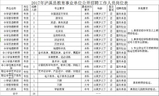2017-湘西泸溪县教育事业单位公开招聘28名工作人员方案