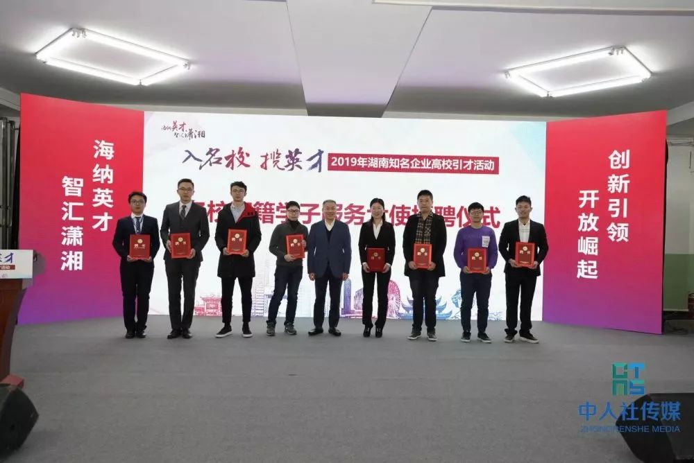 据悉,为了帮助更多有意向回家乡发展的湘籍学子找到满意的工作。今年湖南名企“入名校·揽英才”举办方提前向所到高校获取湘籍学子详细名单,并且走访了湘籍学子代表,发展湘籍学子作为引才大使,为家乡引才建言献策,充分调动湘籍学子的热情和积极性。现场还举行了名校湘籍学子服务大使受聘仪式。