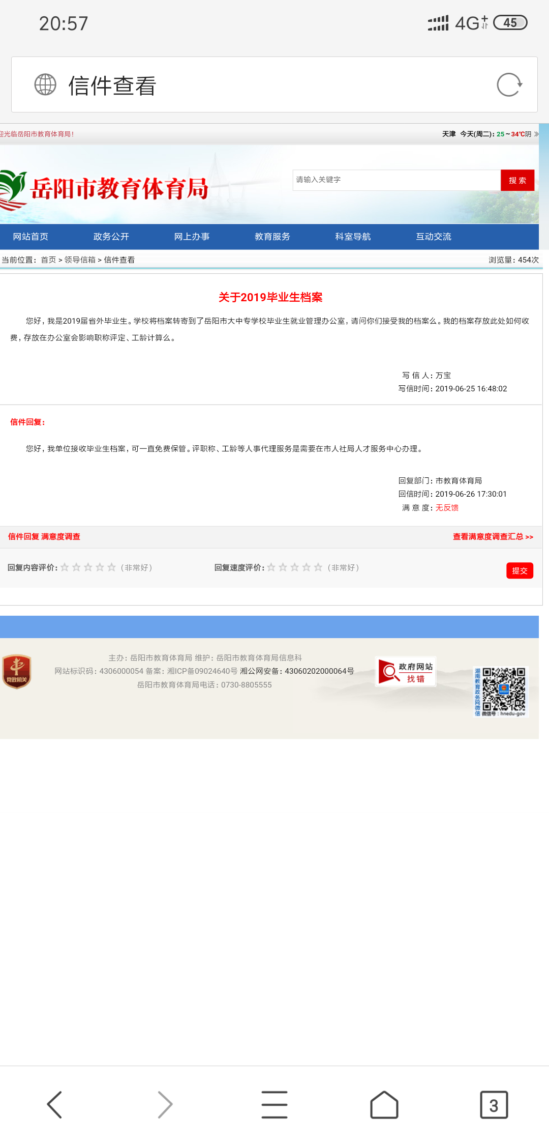 信件回复 满意度调查