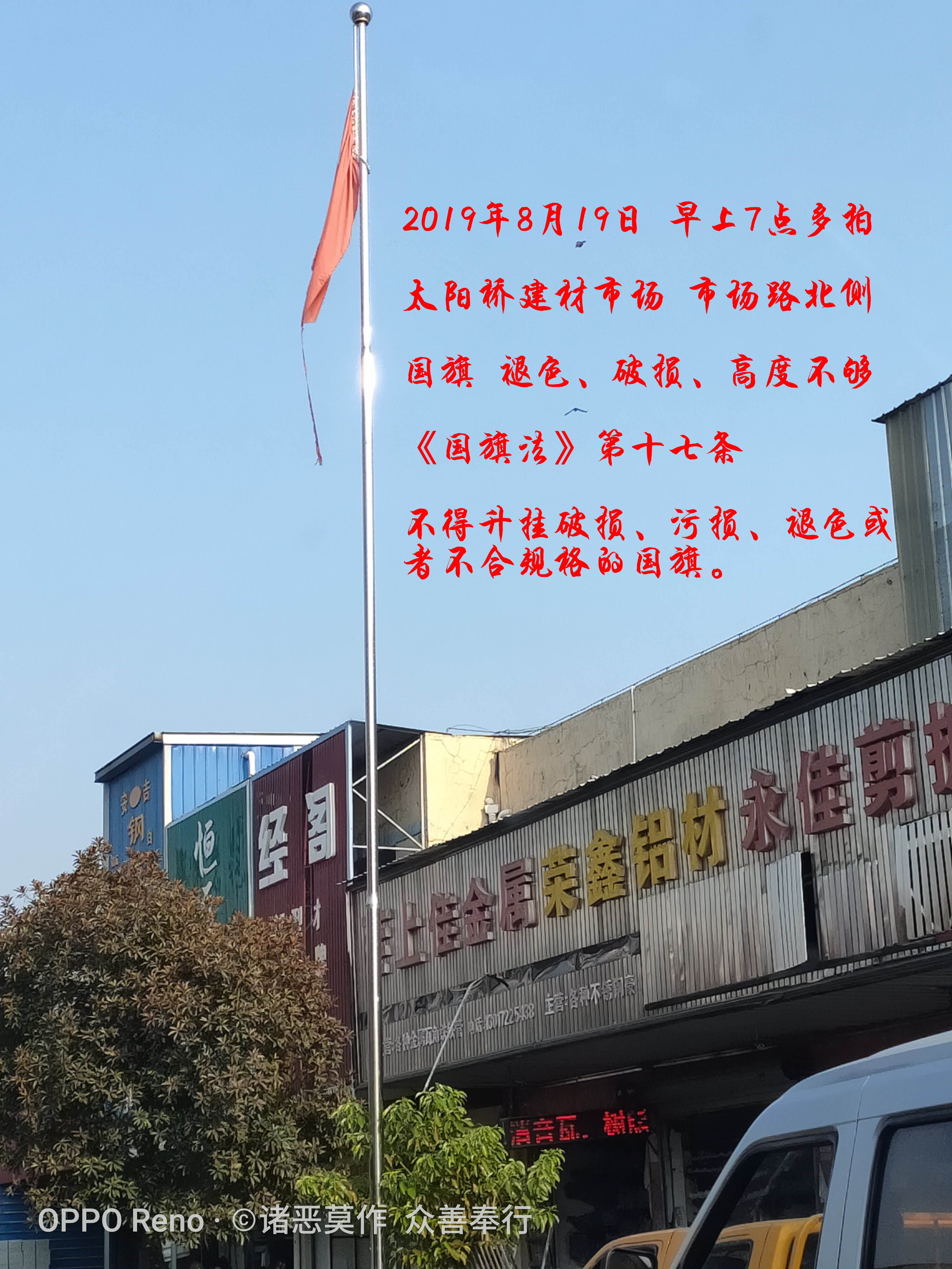 信件已收悉,经调查核实,现回复如下:属地通海路管理处已派人到经开区太阳桥建材市场,督促商户将破旧的国旗进行更换。后期,通海路管理处将加强宣传教育,严禁此类事情再次发生。