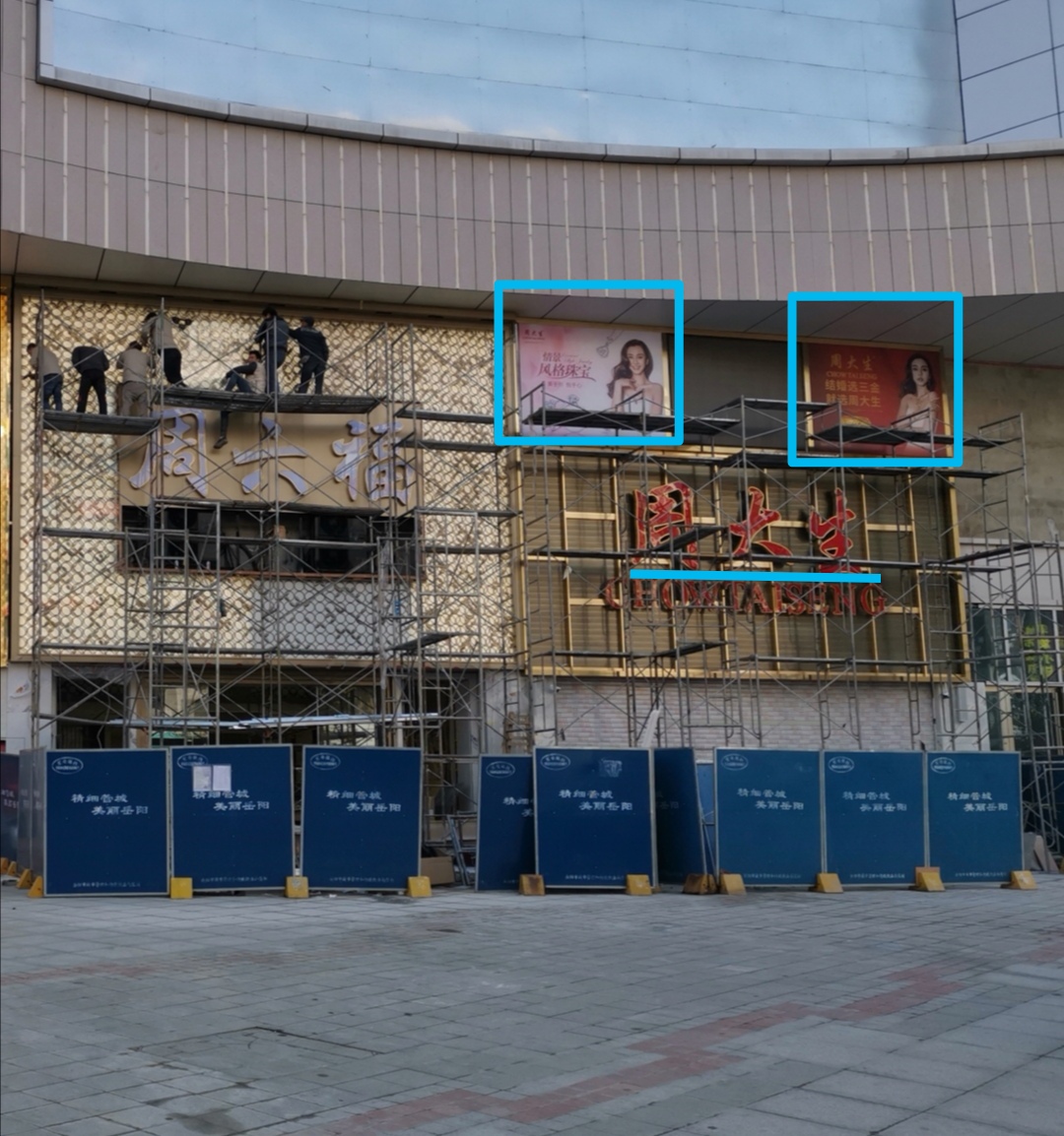 周大生和周六福的字样不平齐是一方面,至少周六福设计没那么土,周大生红色字体不仅土还掉档次,上面两个小广告小海报是来影响城市美观的,既起不到宣传作用也起不到美观作用,友阿管理方需要重视起来,希望市里也能够重视这个广告牌设计问题,将周大生广告牌设计整改到位。