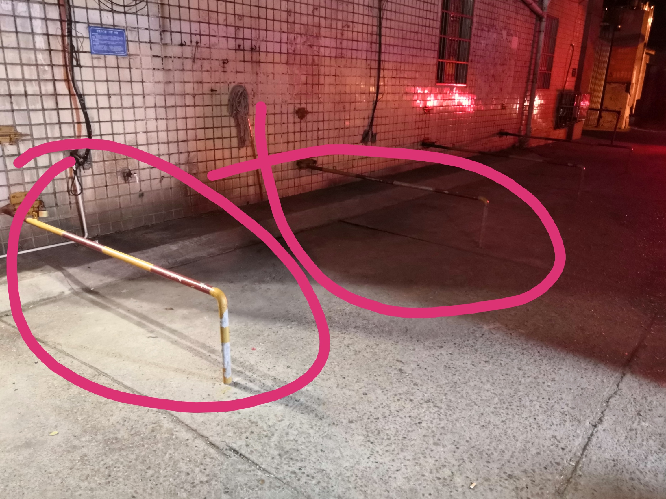 八字门居民点的恒鑫宾馆外墙立杆长期放下来占用通道,请问是否合法?如果不合法请尽快拆除。