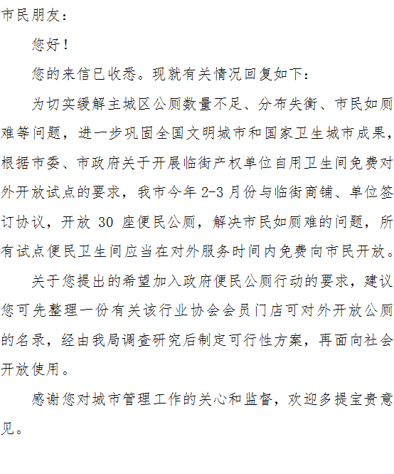 | 标题: | 关于加入便民厕所申请。 |