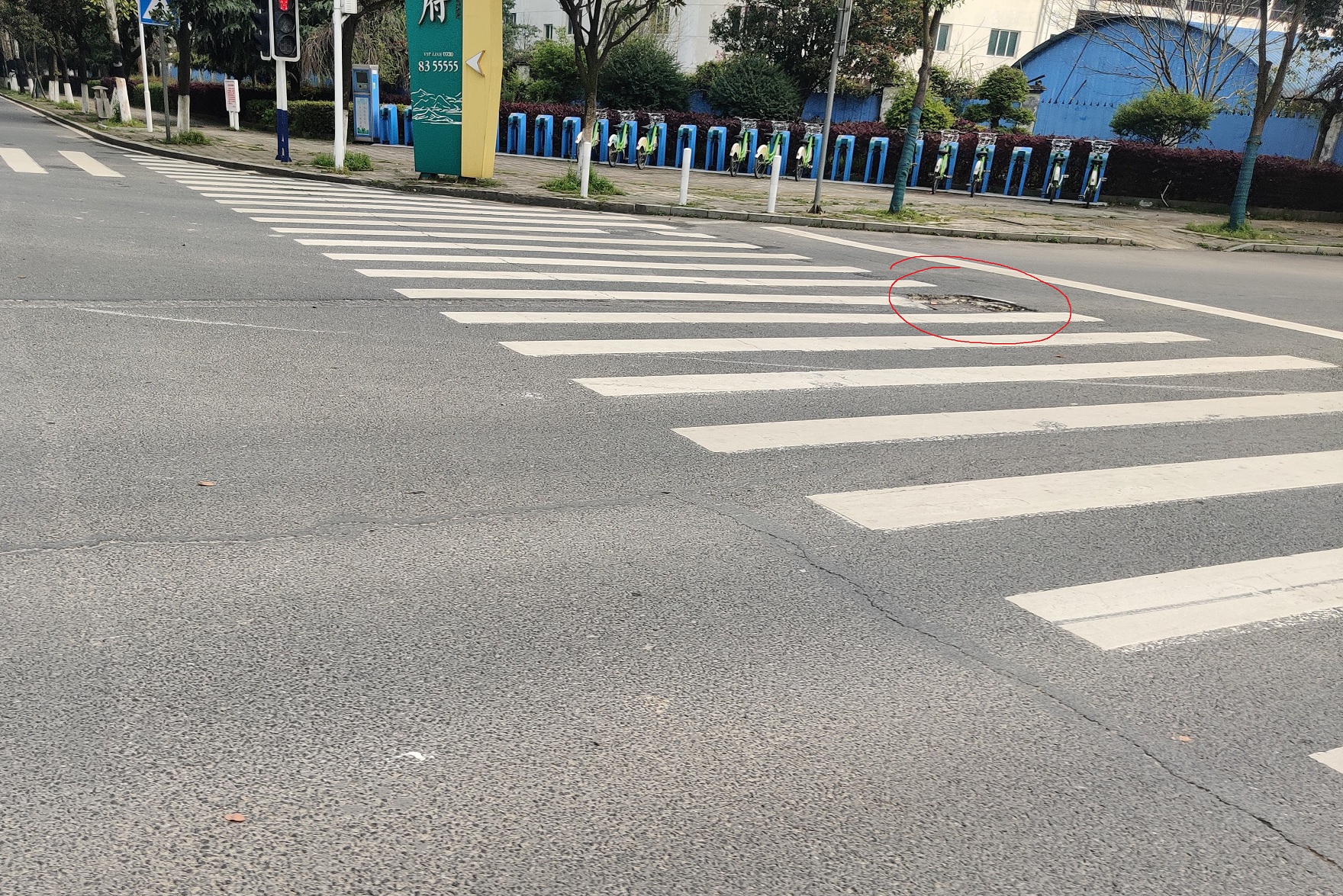 | 内容: | 近日路经通海北路和科美达路交接红绿灯口由南往东右转弯时,感觉到车轮压过深坑发出异响,车身震动明显,后返回时经过该路口特意留意了一下,发现右转弯道附近的路面井盖已经严重塌陷,雨天或夜间车辆视线不清时车辆压上极易对车辆造成损伤,也极易发生交通事故。 市区内东茅岭路东往西经过南湖大道的红绿灯口斑马线处也有一个类似的井盖塌陷多年,也是无人修复。请有关部门加强对路面破损情况的查勘,尽快对危险路面进行修缮!! 附件1:路面坑洞.jpg |