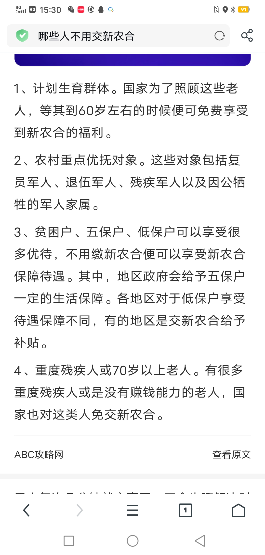 | 内容: | 咨询这个的真假 1、计划生育群体。国家为了照顾这些老人,等其到60岁左右的时候便可免费享受到新农合的福利。2、农村重点优抚对象。这些对象包括复员军人、退伍军人、残疾军人以及因公牺牲的军人家属。3、贫困户、五保户、低保户可以享受很多优待,不用缴新农合便可以享受新农合保障待遇。其中,地区政府会给予五保户一定的生活保障。各地区对于低保户享受待遇保障不同,有的地区是交新农合给予补贴。4、重度残疾人或70岁以上老人。有很多重度残疾人或是没有赚钱能力的老人,国家也对这类人免交新农合。