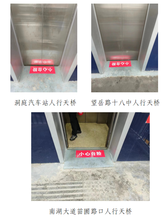 | 回复内容: | 尊敬的市民: 您好!您的来信《南湖大道天桥电梯出入口需增加安全标识》已收悉,现将有关情况回复如下: 为确保行人安全通行,我局属市市政维护管理中心在城区范围内具有较大斜坡的人行天桥电梯出入口粘贴安全标志,改造已于1月31日完成。 感谢您对城市管理工作的关心和监督,欢迎多提宝贵意见。 附件:现场图片 岳阳市城市管理和综合执法局办公室 2024年2月2日 附件: