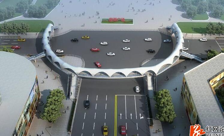 谢谢您百忙中查阅此信。本人在红网论坛看到某岳阳网民发布的“步行街及南湖广场两个地段人行天桥方案批前公示”帖,其中写明了地点是在东茅岭步行街和南湖广场附近准备建天桥的规划,相关图照见附件,从效果图上看此天桥都建了上下扶梯及多色过道顶棚,看上去还是不错的。