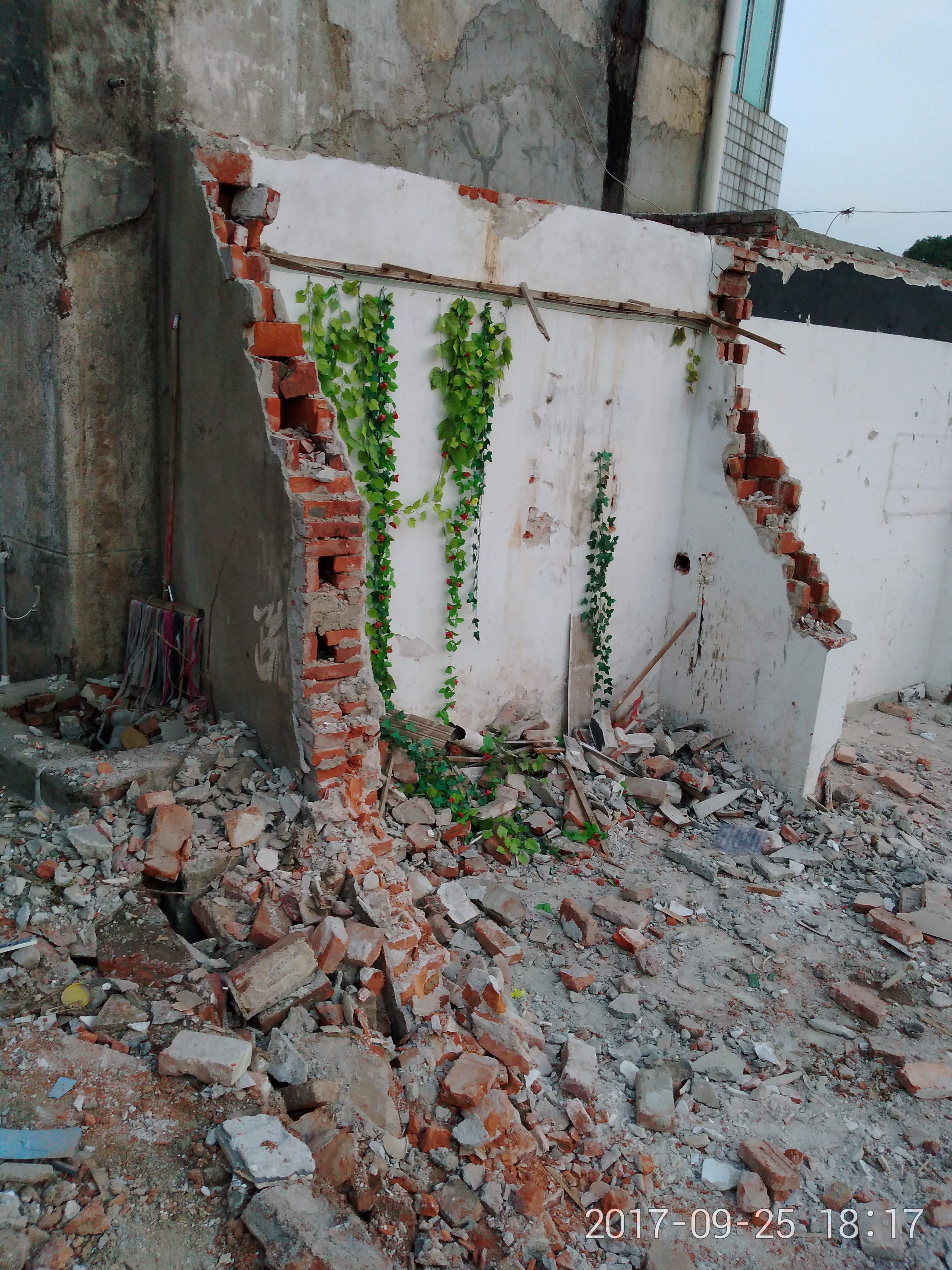 现在学院路在进行提质改造工程,将在学院路与蔡家小学路口的东冲巷2号的房屋进行了拆除,但拆除不砌底,有一面墙没有拆除(如图),因为在蔡家小学的出口,经常有小学生在墙下墙下玩,有极大的安全隐患,望有关部门重视尽快拆除此危墙,谢谢。 附件1:uploadfiles/201710/20171009203822904.jpg |