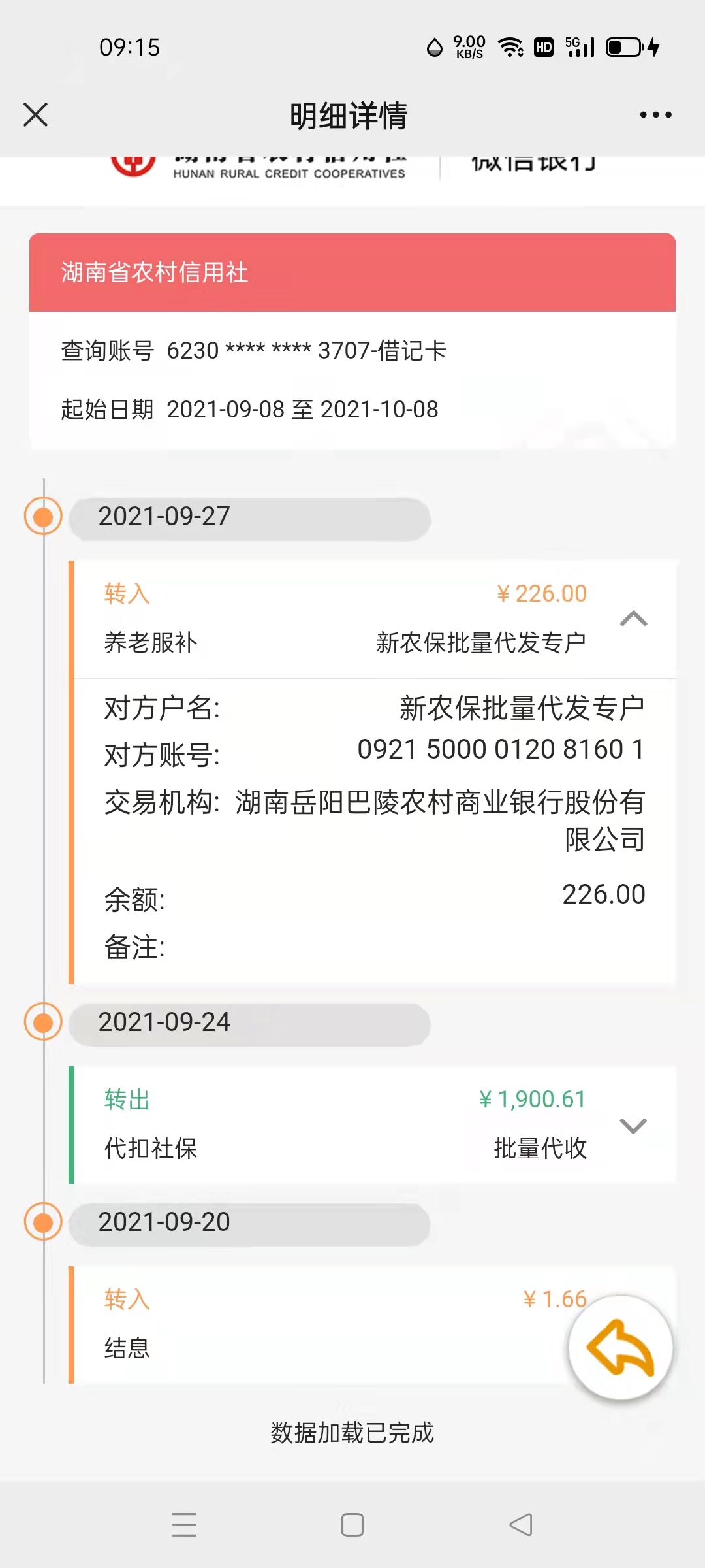 关于老父亲的养老金账号上的1900.16元抵扣去向原由 因多方面原因我老父亲年满87岁一直未享受国家基本养老金福利,2020年9月底,我通过咨询,开车载着老父亲从平江到荣家湾镇办理了领取养老金的银行卡。当时社保站的同志建卡的时候,说尽量看能不能给老父亲适当补一些年限的养老金,听到深表感谢!因老父亲身体一日不如一日,左脚行动已不便,我本人工作在平江,可以说上有老,下有小,生活照顾上很有压力!2021年1月份,我从老父亲的养老金银行账号上取了6000元,用于生活开支,当时卡上剩余有1200多元。2021年8月份,我接到社保站的电话,说老父亲的养老金停了需要去人社APP进行认证,我按照社保站的同志进行了认证并且用湖南日报报头加身份证、银行卡及老父亲本人一起拍照发给了社保站同志进行双认证。9月份才重新开通发放养老金,我出于好奇国庆期间,用微信关注了银行卡的微信银行,登录老父亲的账号后,发现余额仅226元,我心想卡里应该是2000多元,怎么一下只有226元呢?我立即向社保站同志进行咨询,他给我查询了老父亲的养老金情况,已核发8115元,除去取了6000,应该剩余2115元,然后我通过微信银行查交易记录,发现于2021年9月24日,有一笔1900.16元的抵扣社保资金划走。那么我的问题来了:1、就算正常划扣银行账号上的钱,也应该先告知当事人原因?2、咨询社保站同志不知缘由,那这种行为属什么呢? 附件1:uploadfiles/202110/20211012113922616.png 附件2:uploadfiles/202110/20211012113935464.png |