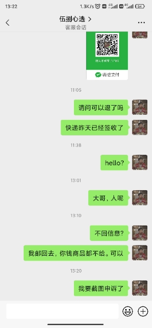 我于1.10号,在伍捌心选(微信程序)-主体账号为岳阳县奶糖伽服装工作室-上购买价值为321人民币的服装,因质量问题要求退货,商家表示必须同拼单人一起申请退货才可以(这里可以进行刷单行为,即店家雇佣水军去和人拼单,然后出现问题后水军不同意退款,达到刷单行为,这里我并不追究这个行为),协商后要求换货,商家同意,发来后版型不同,本人再次要求换货,从此商家不回复消息,微信投诉后仍然不回复,已经一周左右,我只好把货按照之前给的地址寄走,然后商家拒收,并不回复我消息,拒绝沟通。(商家期间用侮辱性语言攻击) 我考研学校选的是湖南师范大学,因为我感觉湖南挺好,是我值得奋斗的地方,但经过这件事,难免会对湖南排斥,已经在思考值不值得去湖南,尤其是湖南政府前几月份刚发布消费者权益法,就出现这种欺诈消费者的事情,我很惋惜,但更痛惜。望市场局能发挥职能,维护消费者权益,也不让湖南在这种事情上“翻车”。希望能在三日之内答复我。 附件1:Screenshot_2022-01-28-19-42-33-562_com.tencent.mm.jpg |