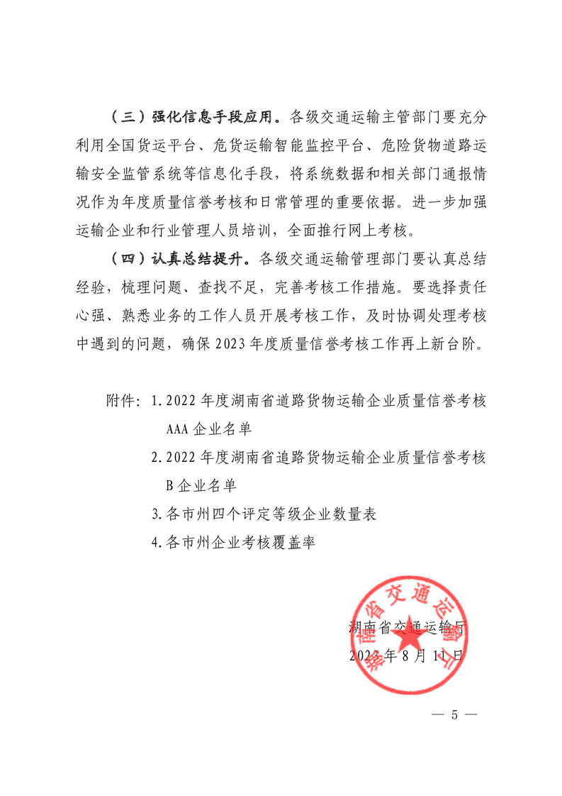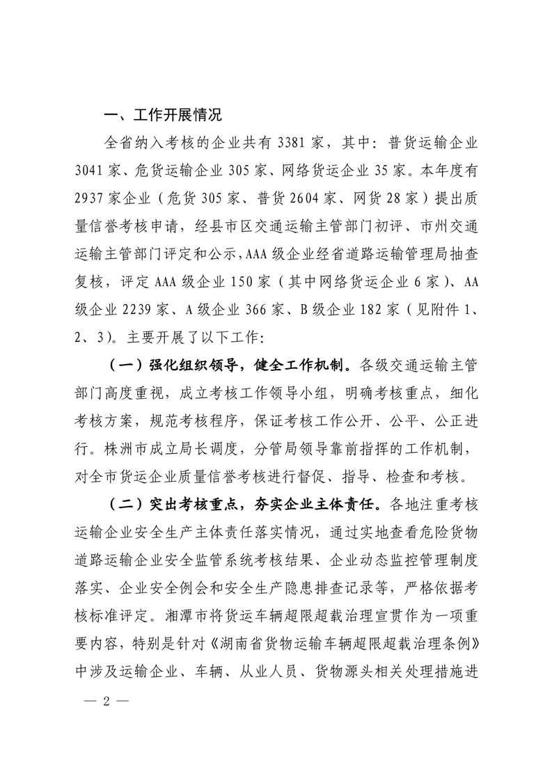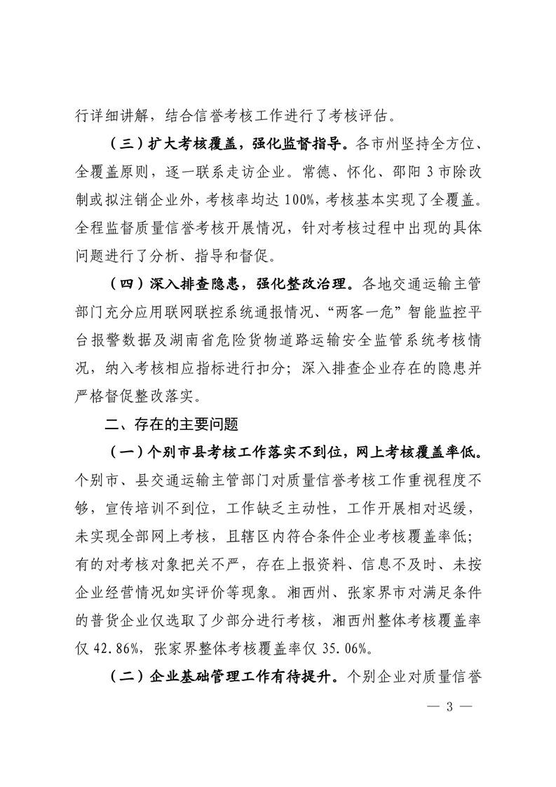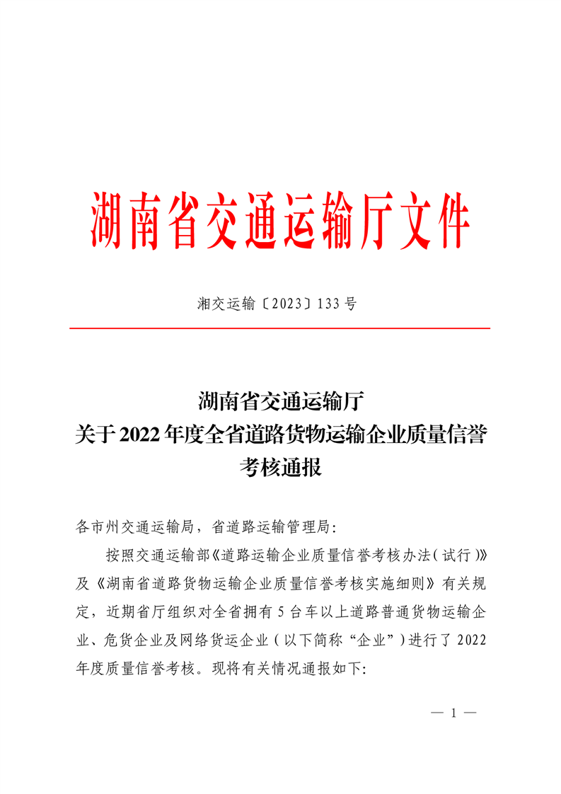 湖南省交通运输厅关于2022年度全省道路货物运输企业质量信誉考核通报