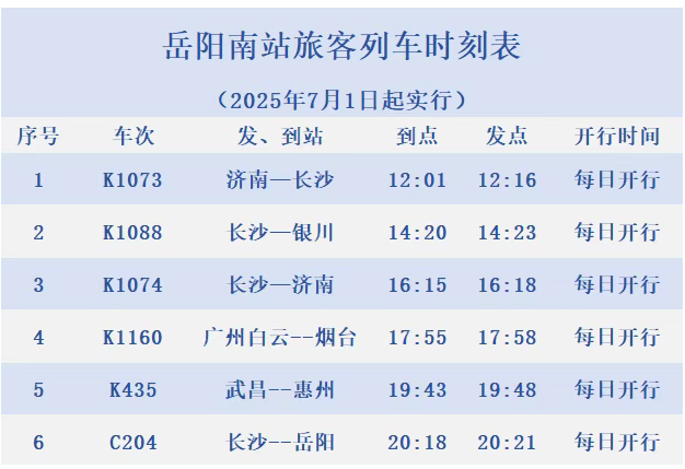 3趟变6趟!7月1日起,岳阳南站出行大升级!