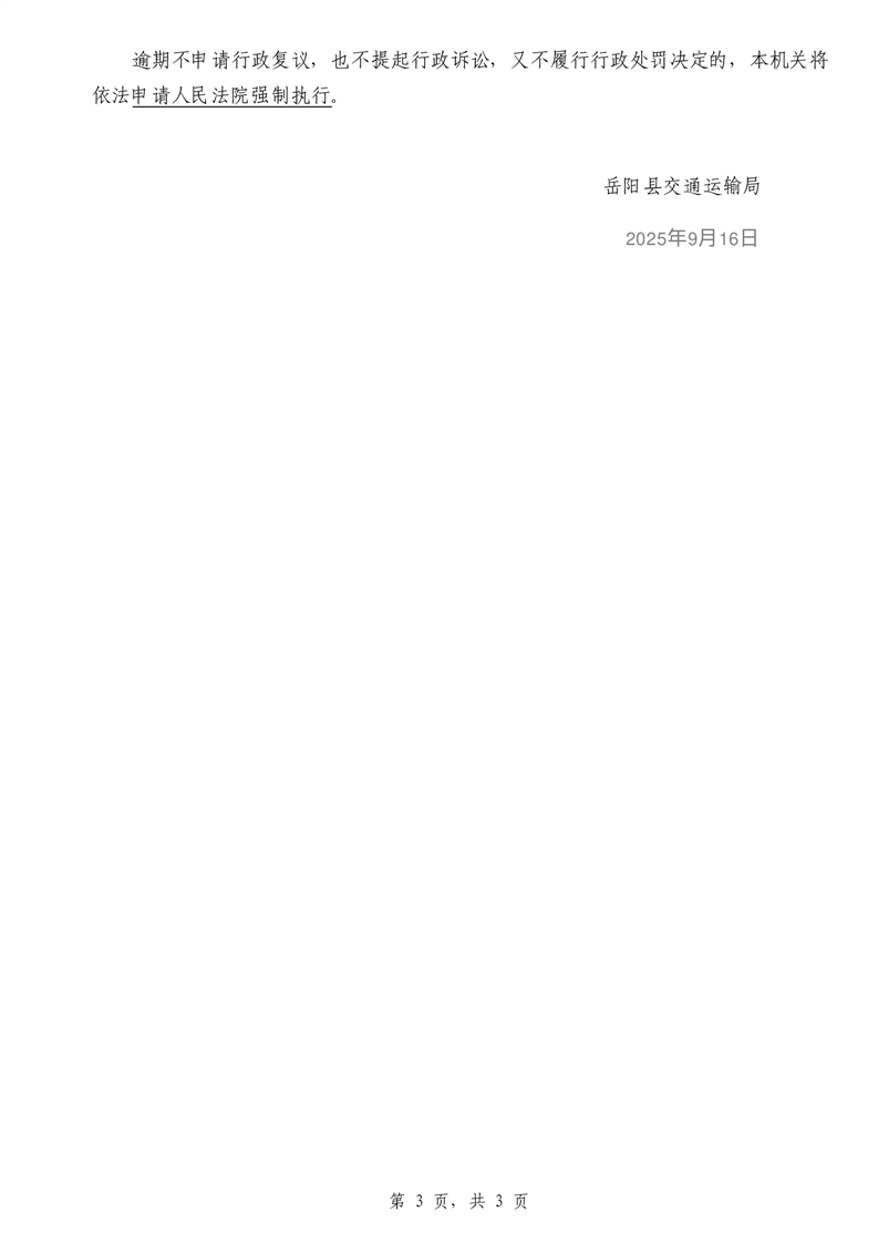 | 公开主体 | 岳阳县交通运输局 | ||