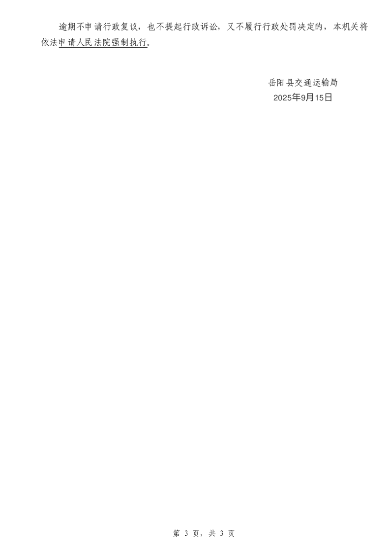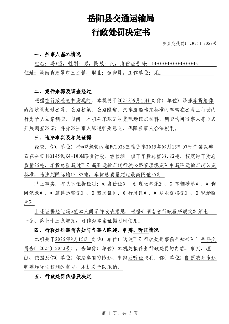 行政处罚决定书 岳县交处罚〔2025〕5053号