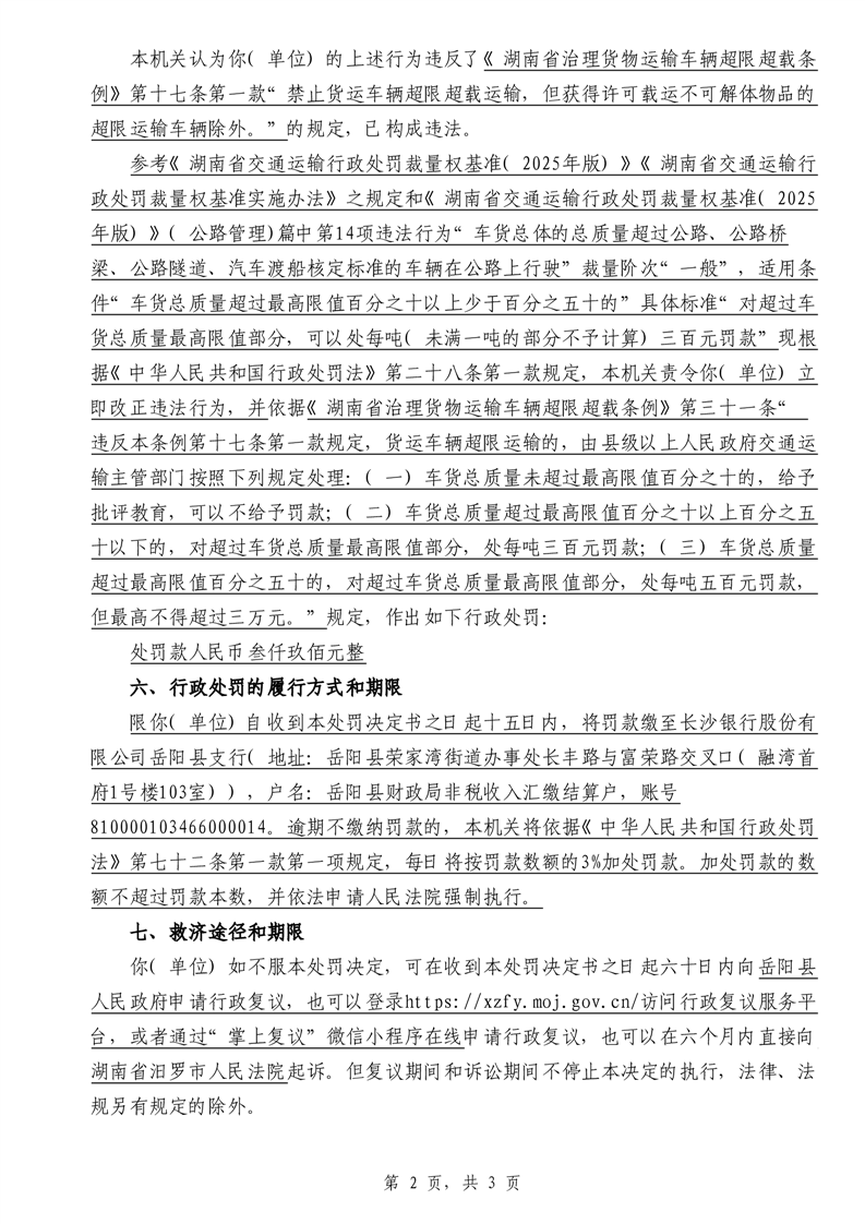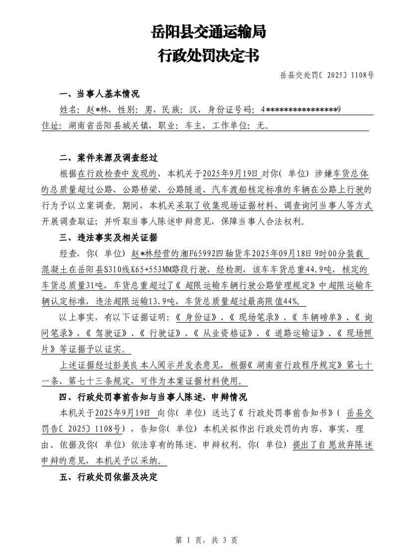 行政处罚决定书 岳县交处罚〔2025〕1108号