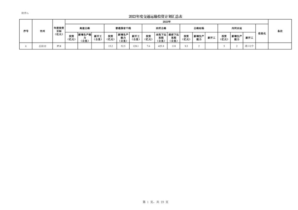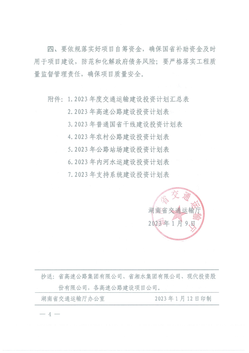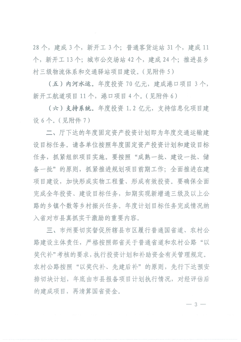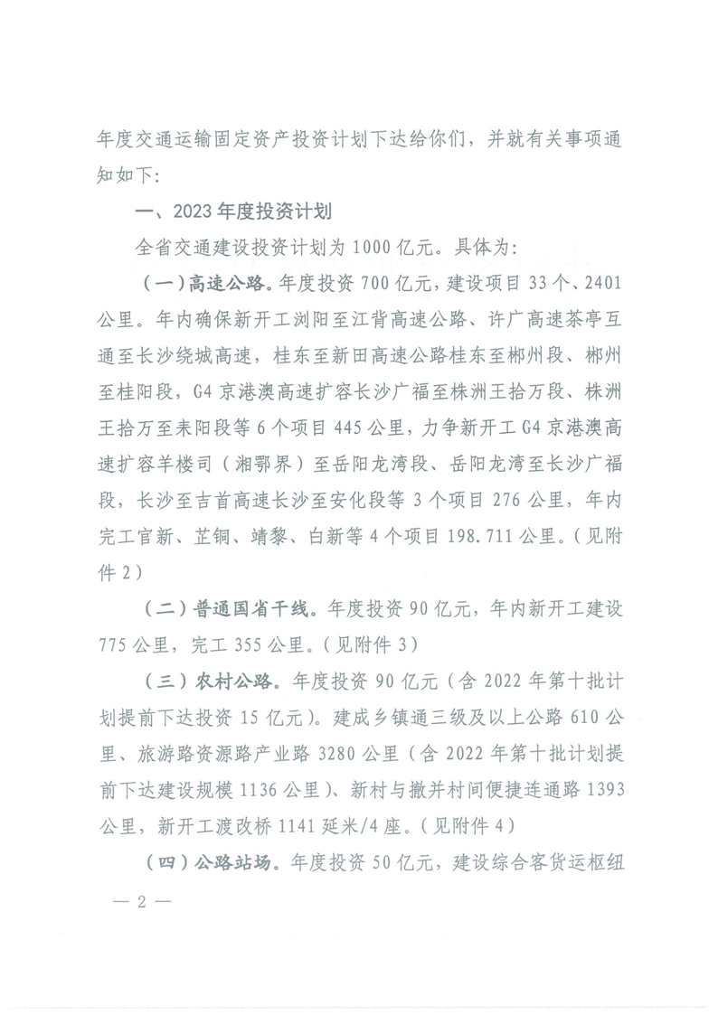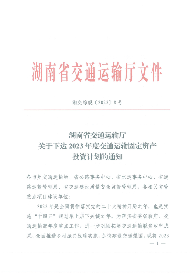 关于下达2023年度交通运输固定资产投资计划的通知