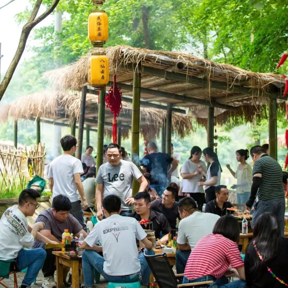 民俗乐园里的人间烟火气 天然氧吧下自己动手 感受户外烧烤团建的快乐 同时还能品尝的地道农家乐味道 泥炉烤肉、土菜精做 原汁原味、新鲜地道的食材 让你瞬间远离城市喧嚣、回归自然