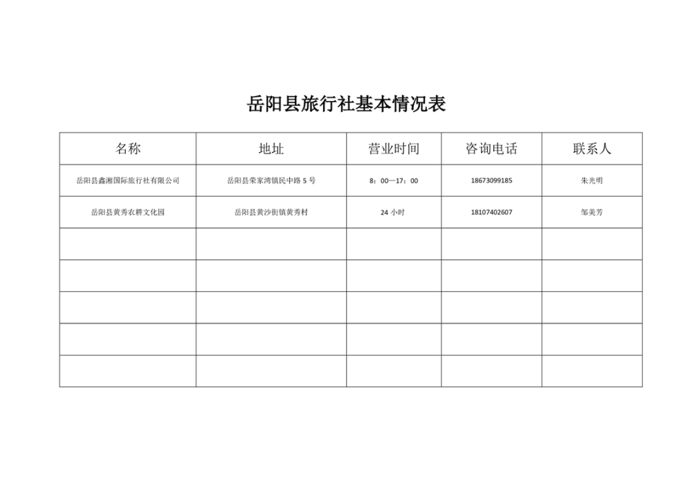 岳阳县旅行社基本情况表