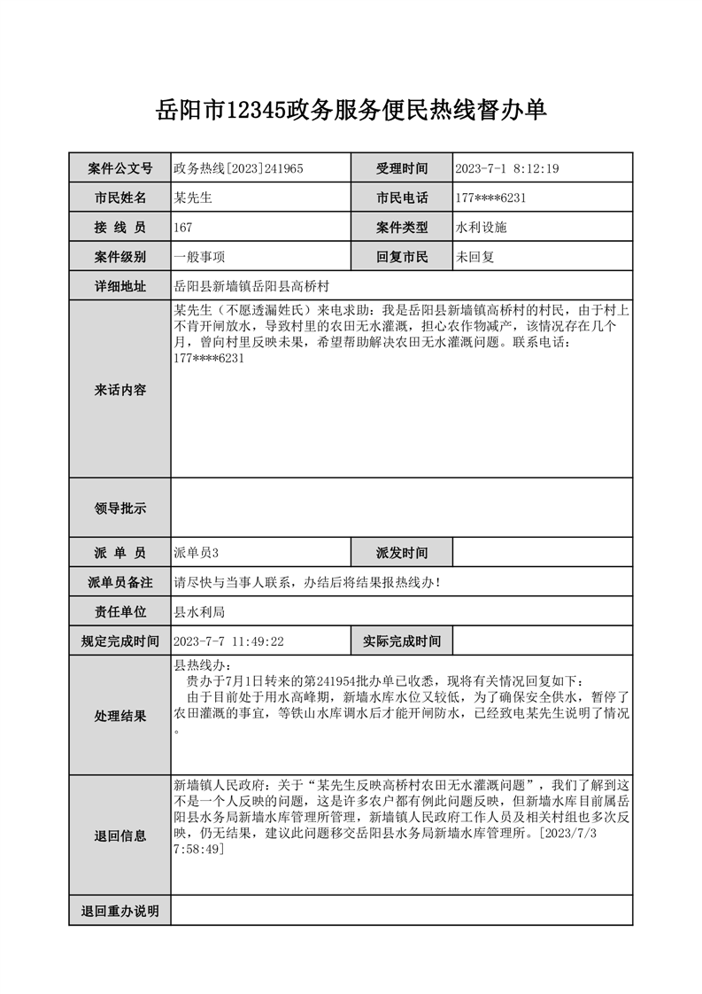政务热线办理(2023)241965