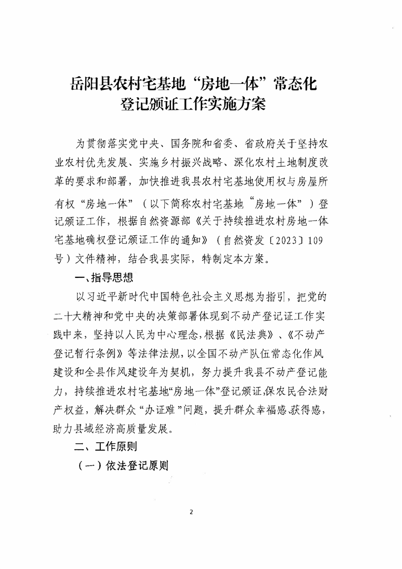 岳阳县农村宅基地“房地一体”常态化登记颁证工作实施方案