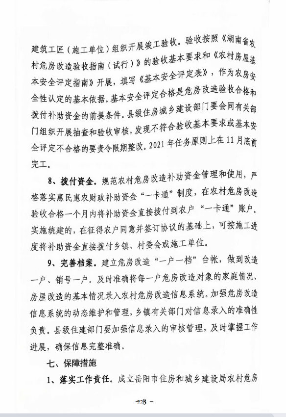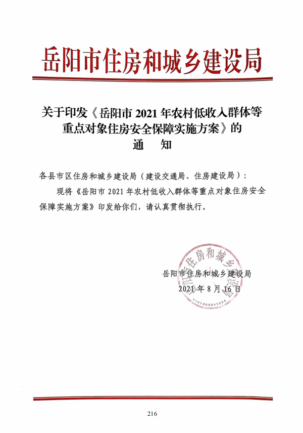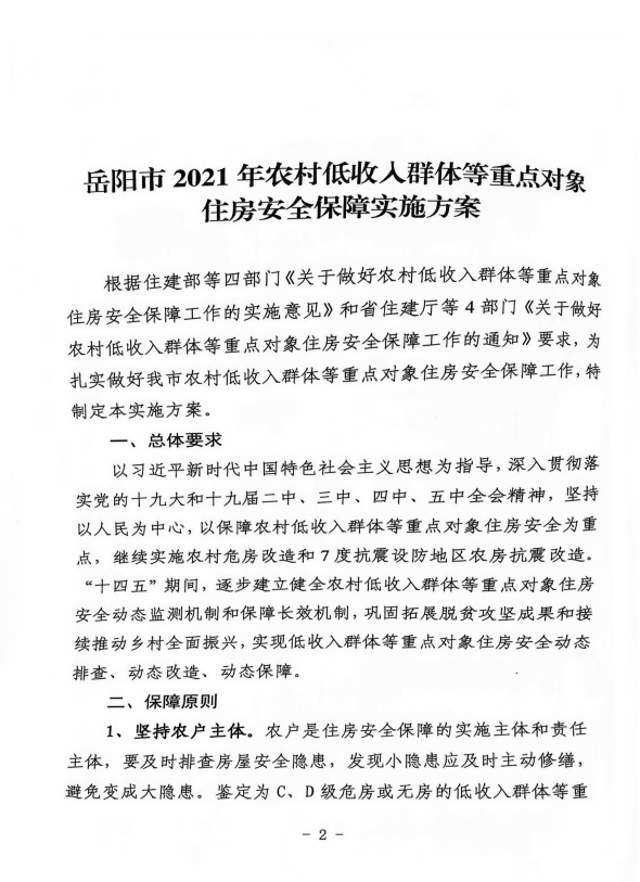 《关于印发岳阳市2021年农村低收入群体等重点对象住房安全保障实施方案 的通知》