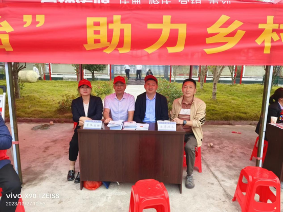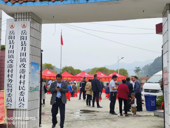 为改善民生、提高农民工的生活质量,2023年10月27日上午吗,岳阳县法律援助中心主任胡奇勇带领法律援助志愿者来到岳阳县月田镇改港村村部,与岳阳县统战部,岳阳县仁雅医院,岳阳县农商银行等单位一起为当地农民带来各种惠民活动。